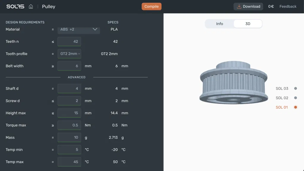 Để tùy chỉnh pulley của bạn và tải file STL: