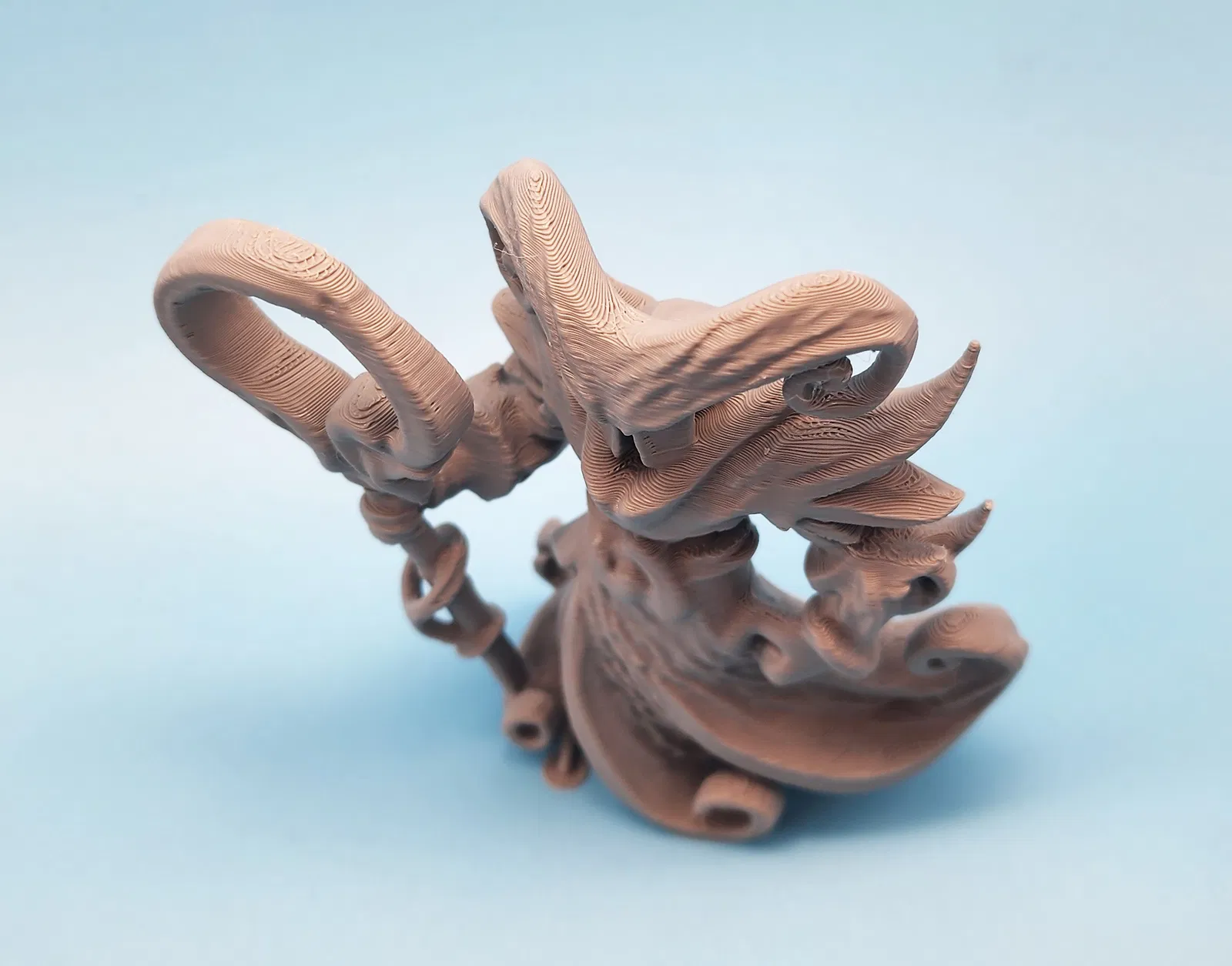 - Phần đầu quyền trượng khá mỏng manh, nên cân nhắc tăng số lớp tường (extra perimeters) hoặc dùng vật liệu bền hơn để tăng độ chắc chắn.
