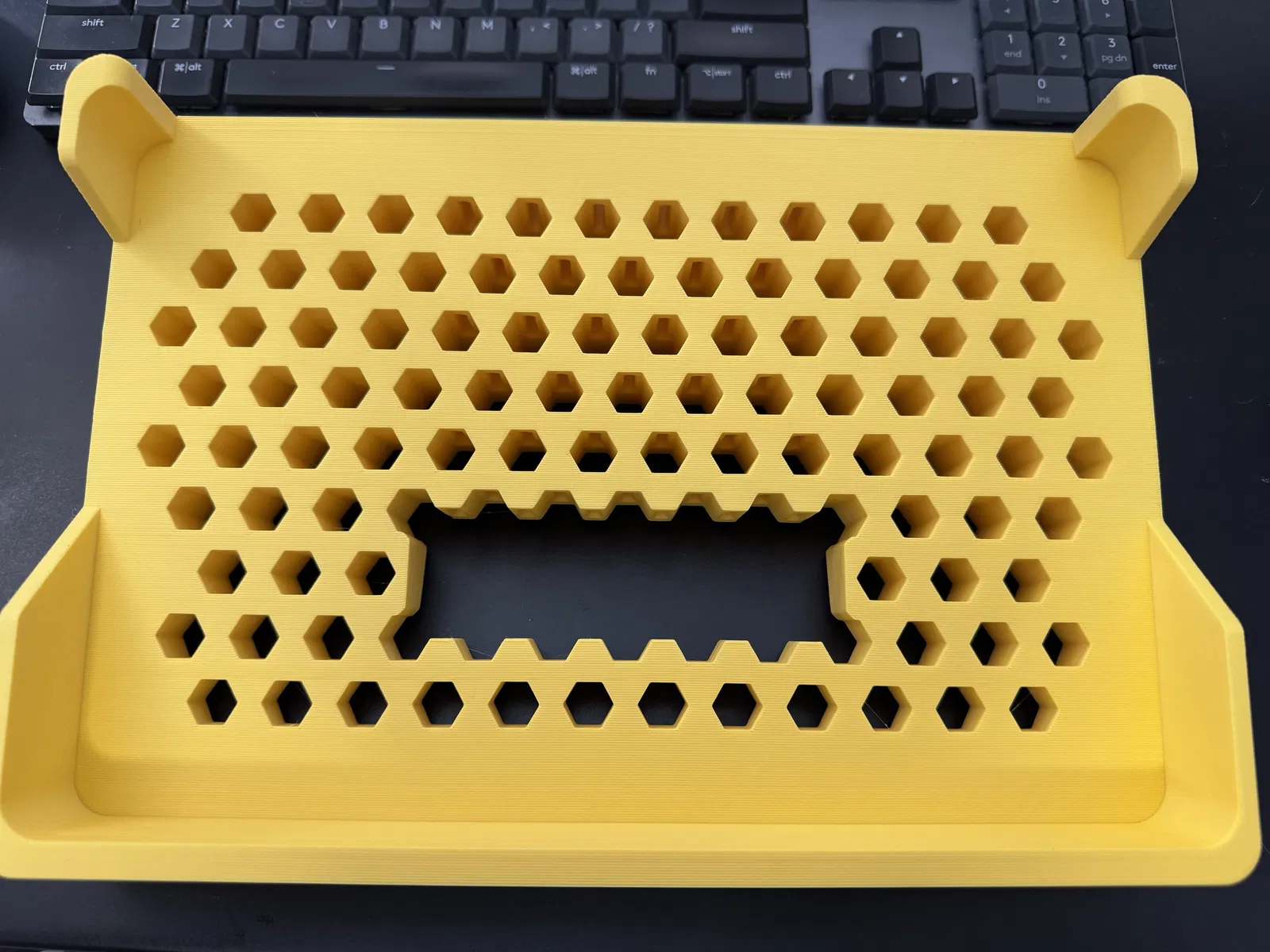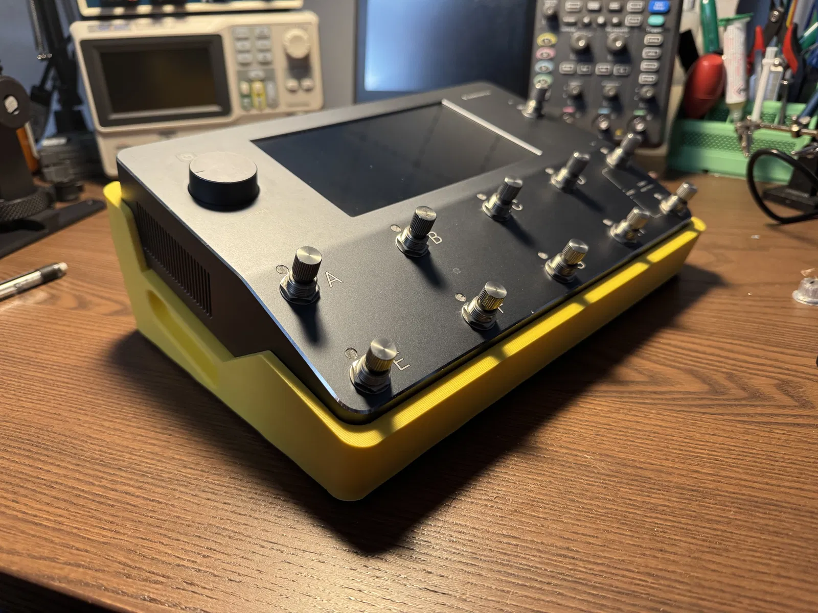 Mình thiết kế cái stand cho Quad Cortex này để có góc nhìn dễ hơn khi dùng máy trên bàn làm việc hoặc ngồi dưới sàn. Nó ôm khít QC, vừa như in. Stand có chừa một khe cho lỗ thoát gió phía dưới và có các phần gờ bám để cầm nắm cả cụm cho tiện hơn.