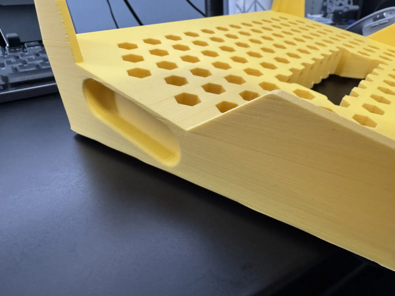 Stand nghiêng nguyên khối cho Neural DSP Quad Cortex, giúp nhìn và thao tác dễ hơn khi để trên bàn hoặc ngồi dưới sàn. Có khe cho vent mặt dưới và gờ bám để cầm nắm. Kèm file STEP để chia nhỏ in máy nhỏ.