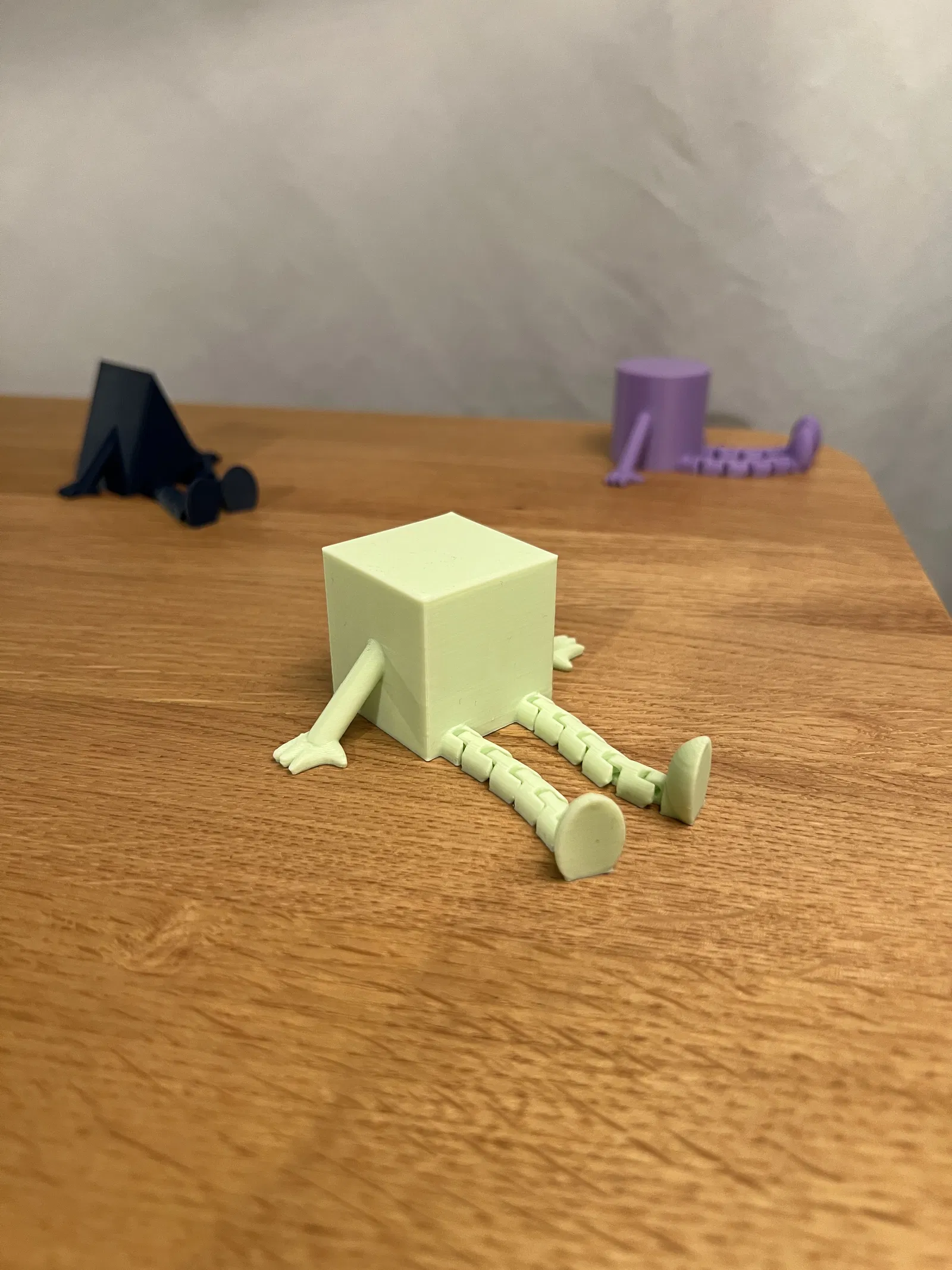 Gặp gỡ Articulated Cube, sự kết hợp dễ thương giữa thiết kế hình học và chất sáng tạo vui nhộn! Với đôi chân có thể cử động và đôi tay xinh xắn, bạn “bạn khối lập phương” này rất hợp để làm sáng bừng góc bàn, kệ, hay bất kỳ không gian nào. Dùng làm đồ trang trí, đồ chơi giảm stress, hay đơn giản là một điểm nhấn lạ mắt để bắt chuyện—mẫu cube khớp nối này mang phong cách hiện đại và vui hoài không chán!