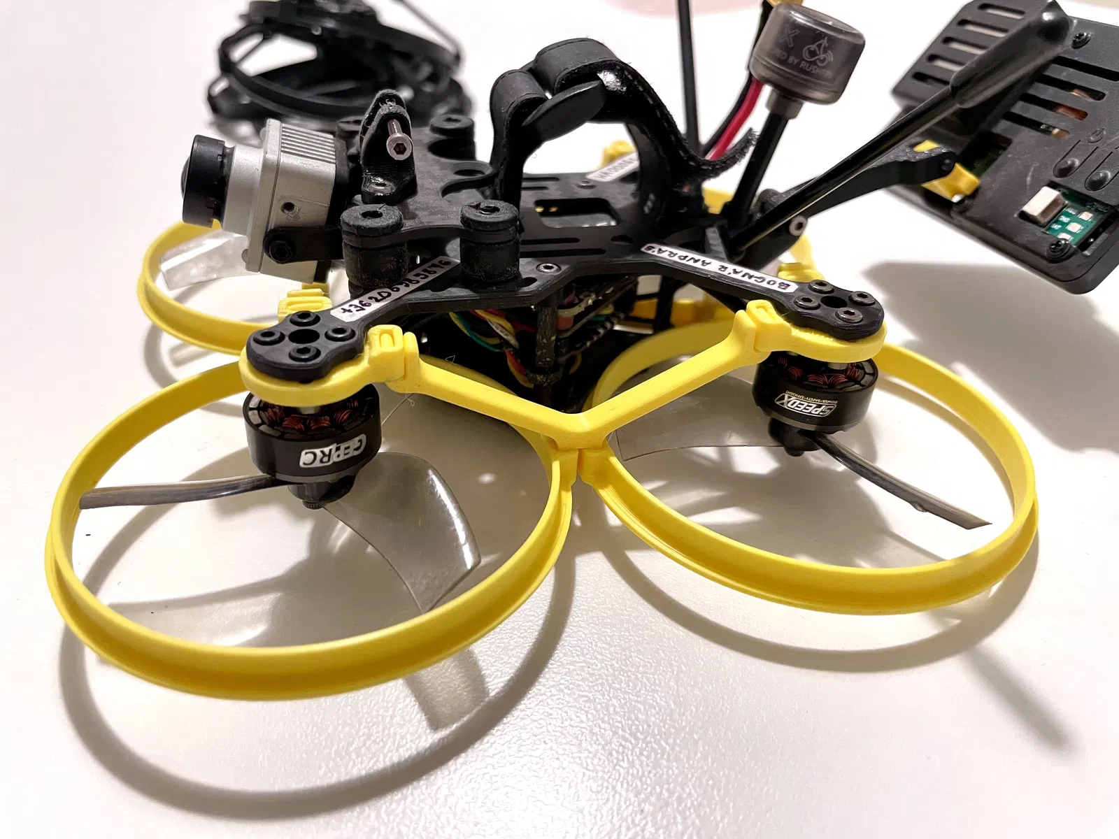 Phiên bản nâng cấp của thiết kế ốp bảo vệ cánh quạt cho CineWhoops: vòng ngoài dẻo hơn, phần trong cứng và bền hơn, giảm thêm 3g. File STL cho Cinelog25, có thể chỉnh tham số trong Fusion 360 để fit các dòng Cinelog khác.