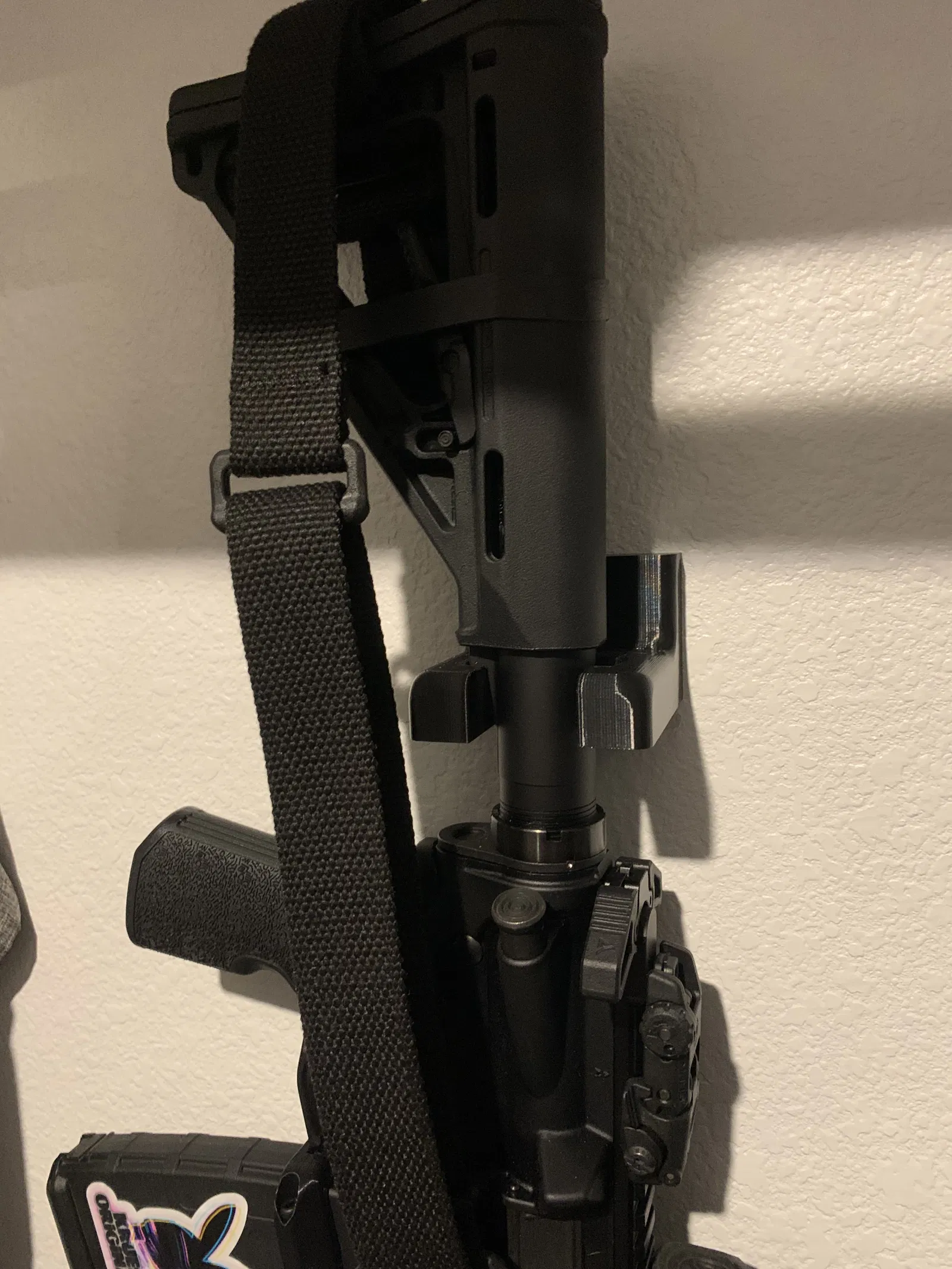 Cách siêu đơn giản để cất/treo các rifle kiểu AR lên tường. Cắm buffer tube vào khe là treo được, vẫn để nguyên mag trong rifle để luôn sẵn sàng. Thiết kế ambi, thuận cả tay trái.