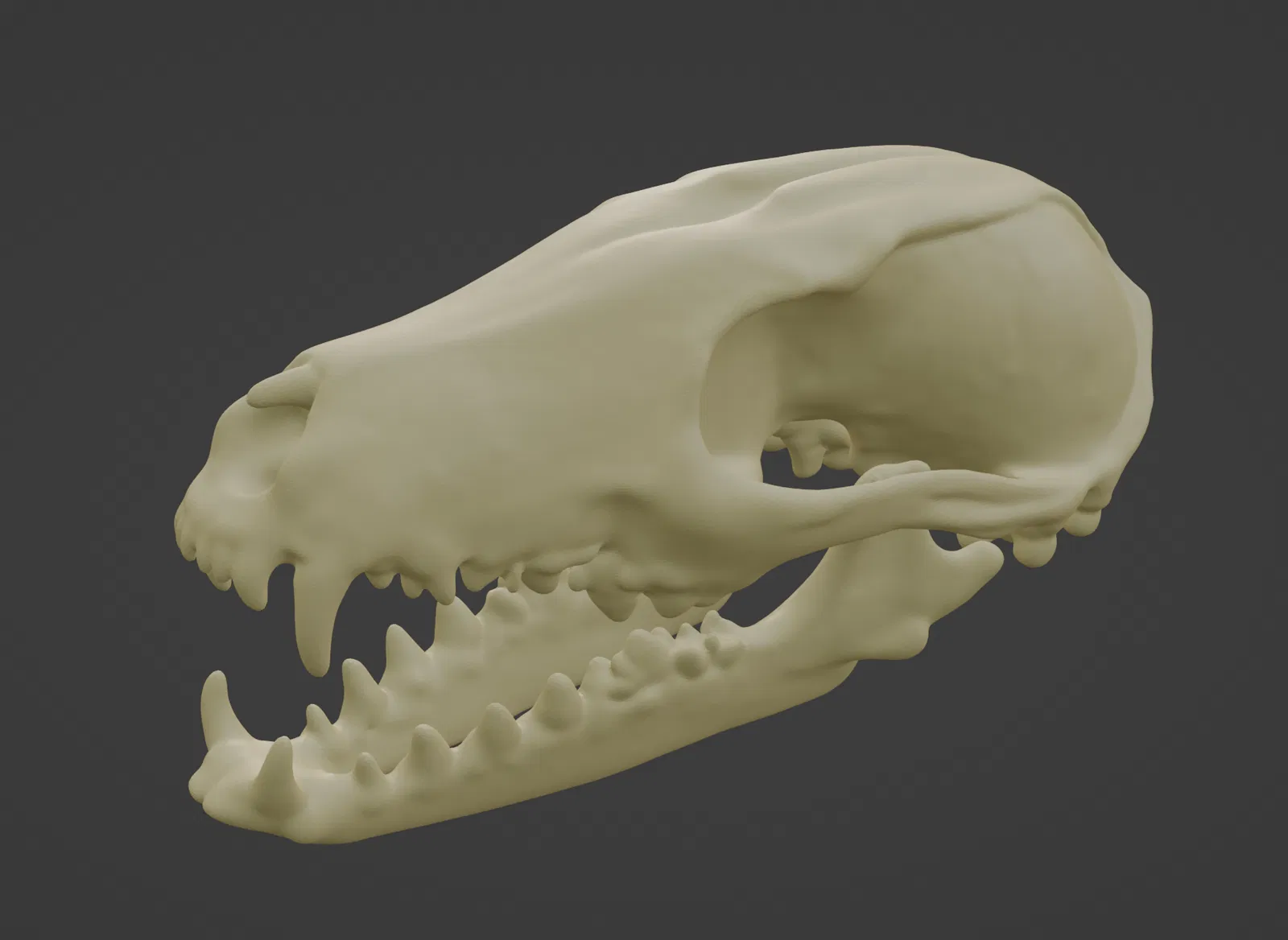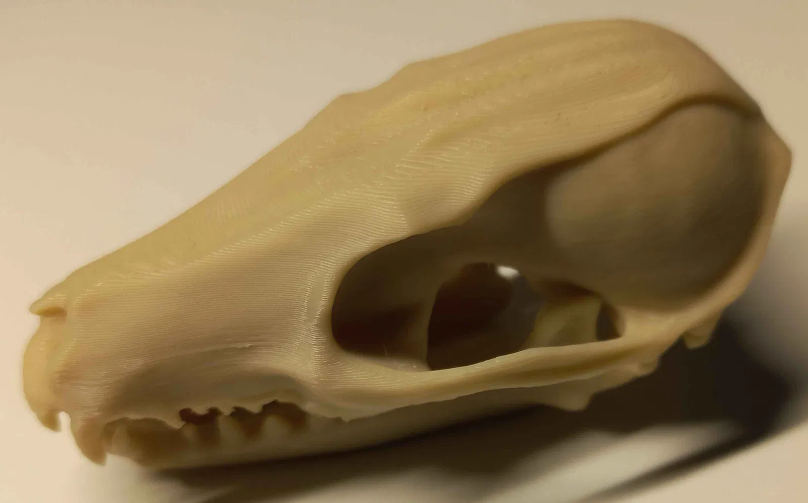 Mẫu “Red Fox Skull” được tách thành 2 phần: hàm dưới và phần sọ trên, giúp in 3D dễ hơn và có thể chuyển động/khớp tốt hơn sau khi lắp. Khuyến nghị in dựng đứng, dùng supports thường và thêm brim để tăng bám.