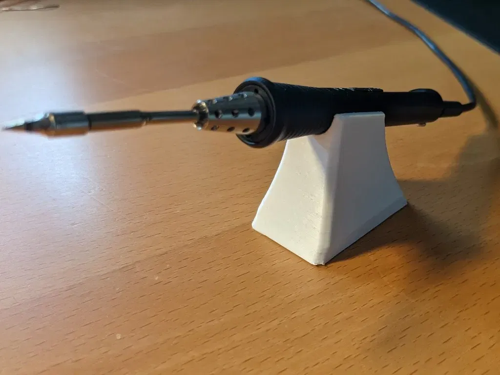 Cây hàn có một vị trí cố định trên bàn làm việc của tôi khi không sử dụng. Để tôi có thể để nó ở đó ngay cả khi nó vẫn còn nóng, tôi đã cố định giá đỡ này vào vị trí bằng băng dính hai mặt. Nếu bạn đang tìm kiếm một giá đỡ hoặc giá có thể di chuyển hơn, bạn nên thêm một tấm nền lớn hơn hoặc ít nhất là nặng hơn.