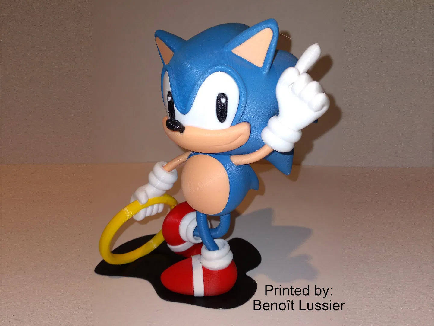 Mô hình 3D Sonic phiên bản Classic (cao 155mm), chia nhiều chi tiết theo màu filament. Không cần supports; có sẵn 2 phần built-in supports/braces và kèm lựa chọn không supports để dùng slicer. Có hướng dẫn in & lắp ráp chi tiết.