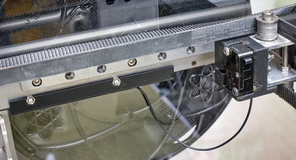 Điều này di chuyển X-Endstop đến gantry và sử dụng một dây nhẹ, linh hoạt (dây tai nghe là thứ tôi đang sử dụng hiện tại) để kết nối, được giữ bằng một kẹp vừa vặn dưới đường ray tuyến tính.