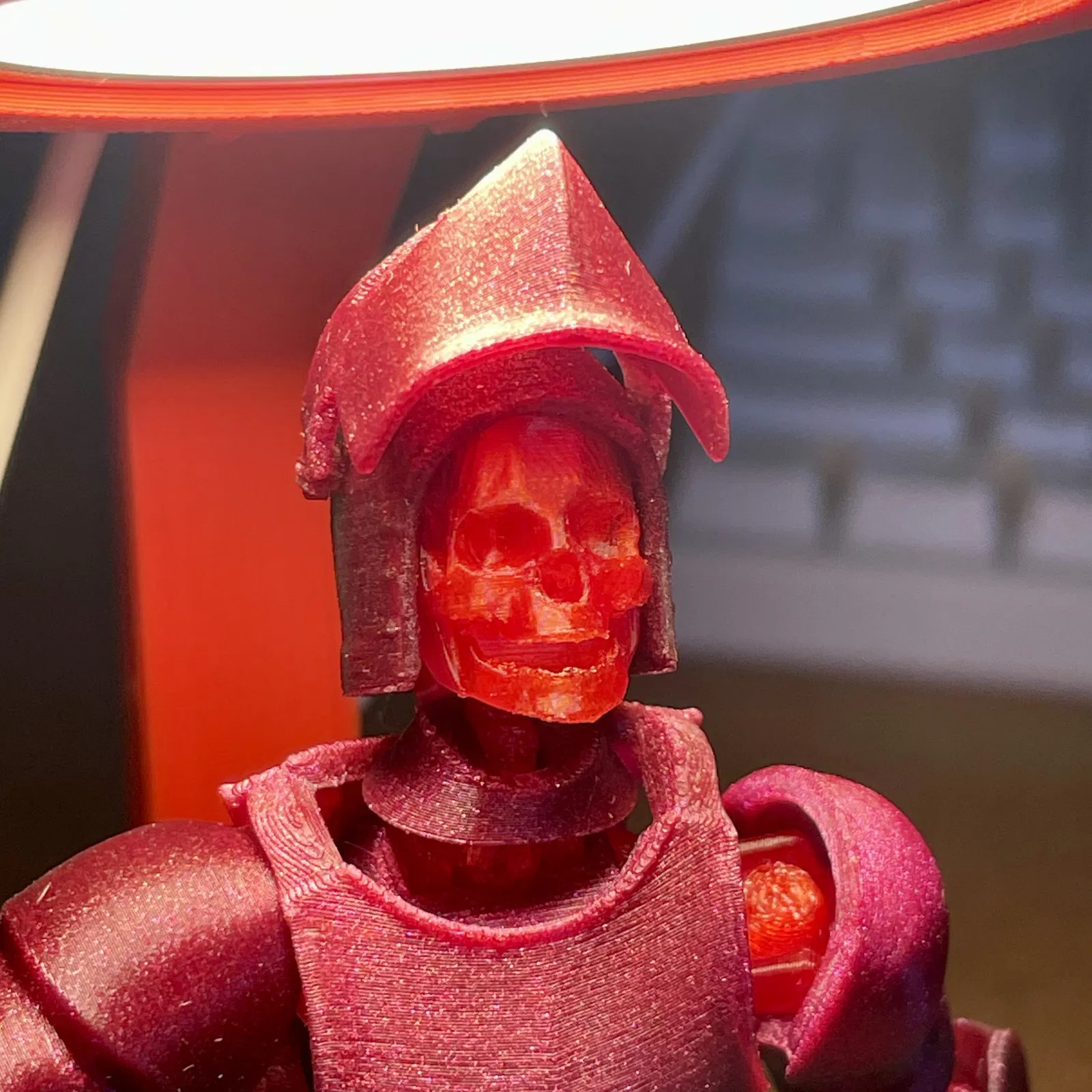 - Lưu ý khi in: Có thể in không cần support, tuy nhiên, sử dụng support sẽ giúp chi tiết phần sọ và mũ giáp rõ nét hơn.