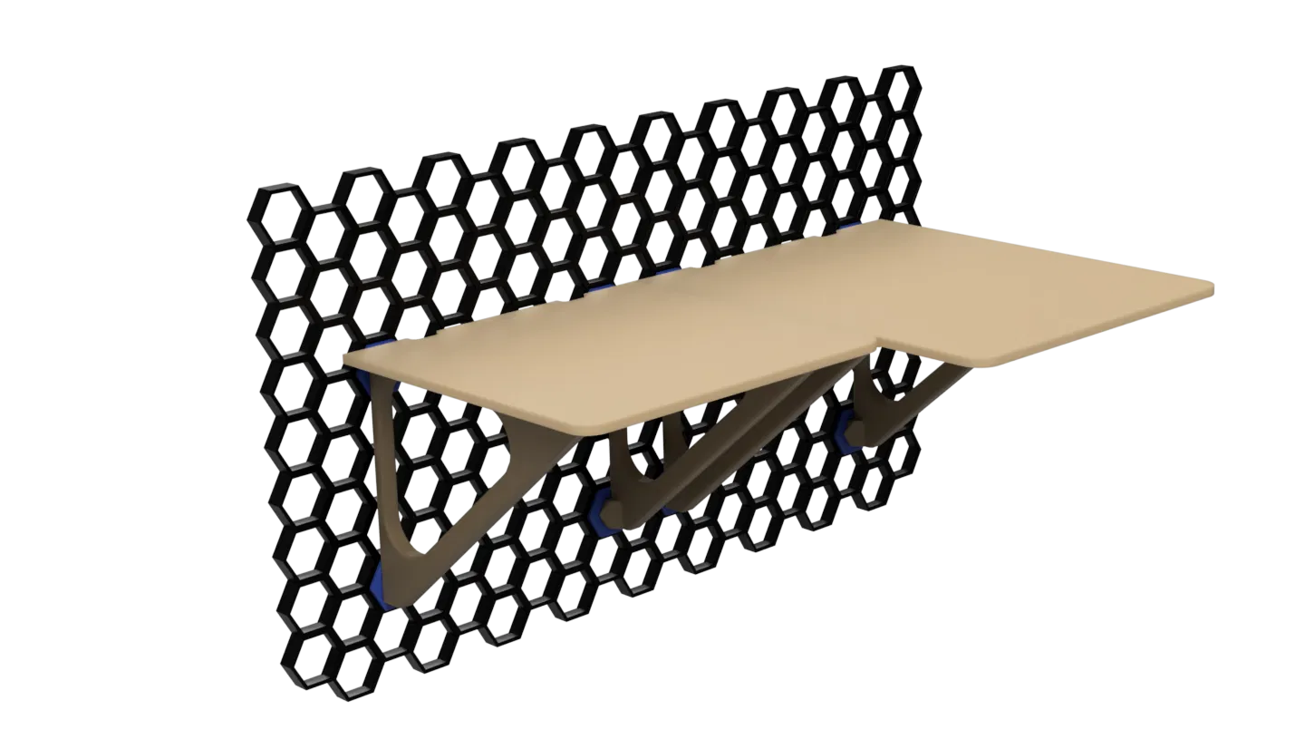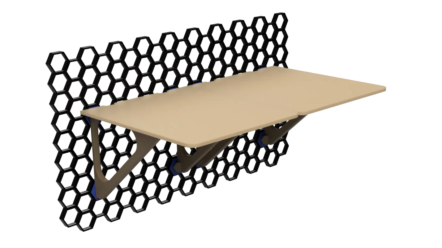 Kệ phẳng lớn cho Honeycomb Storage Wall (remix từ bản Multiboard), có 2 độ sâu 200mm/150mm, rộng 163.41mm. Ghép ngang để thành kệ dài, có lỗ đi dây và kèm profile BambuStudio 3mf.