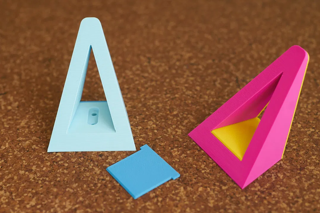 Nếu bạn muốn in phiên bản nhiều màu, chỉ cần đổi filament sau khi in tới độ cao 1,2 mm, đúng bằng chiều cao của phần nắp che.