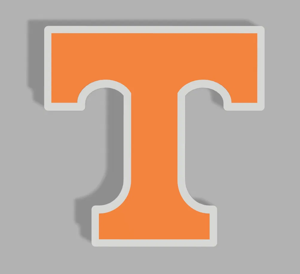 Mẫu in 3D nhiều màu logo chữ T của Tennessee Volunteers (Vols). Làm quà tặng dịp Giáng Sinh, sinh nhật, hoặc dùng làm ornament treo trang trí. Phù hợp cho fan thể thao/football.