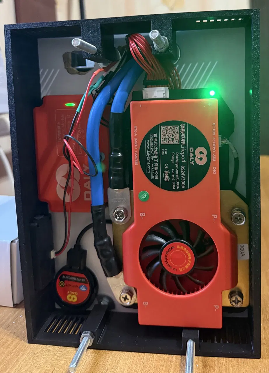 Thiết kế Modular Battery Pack cho Eve LF280K v3 prismatic 280Ah (LiFePO4). Dùng ty ren M6 ~73mm (4 cái), có hướng dẫn dựng đứng, đi dây vào “bms box”, và dùng file side trafaret.stl để làm tấm gỗ khoan lỗ siết cell.