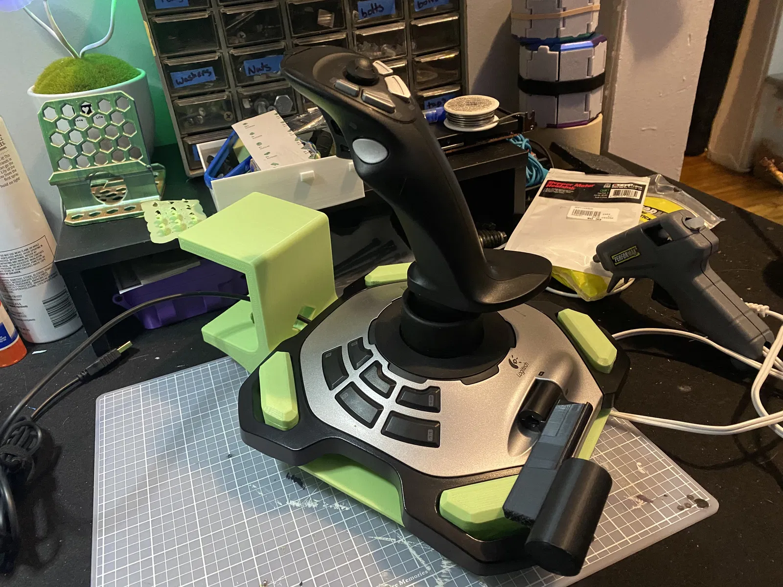 Không muốn bỏ 30–45 USD mua desk mount cho Logitech Extreme 3D Pro? Gá kẹp này giúp gắn với Thrustmaster desk clamp, thiết kế fit chặt; bản V2 cứng cáp hơn, có thể cố định bằng zip ties hoặc bolt.