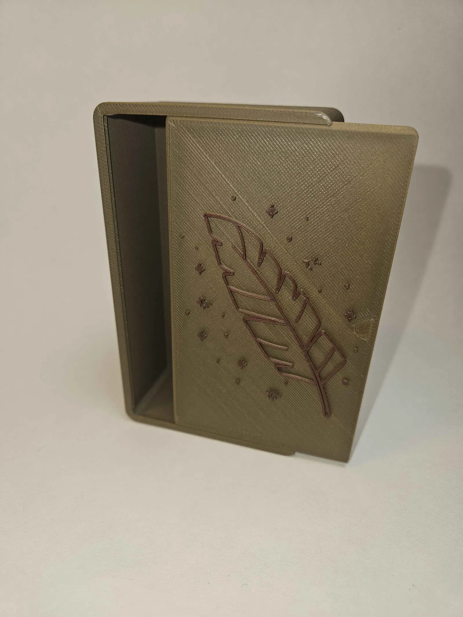 Khám phá chiếc hộp đựng bài Tarot được thiết kế tinh xảo, là giải pháp hoàn hảo để bảo quản bộ bài yêu thích của bạn. Hộp có cấu trúc trượt thông minh, dễ sử dụng, cùng 3 lựa chọn thiết kế nắp độc đáo, giúp bạn thể hiện phong cách cá nhân. Bạn có thể in hộp bằng nhiều vật liệu, đặc biệt là Wood PLA để có hiệu ứng vân gỗ sang trọng. Sản phẩm không yêu cầu vật liệu hỗ trợ, giúp quá trình in ấn trở nên đơn giản và tiết kiệm hơn. Chiếc hộp này không chỉ là nơi cất giữ an toàn mà còn là phụ kiện trang trí ấn tượng cho không gian tâm linh của bạn.