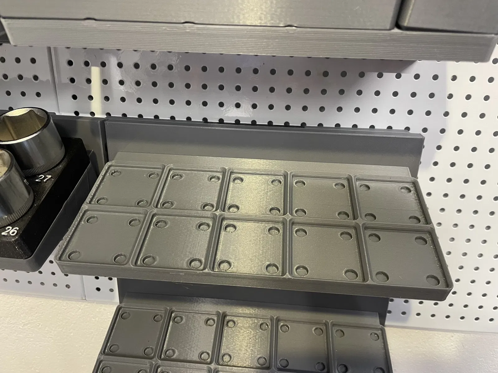 Các thay đổi trong thiết kế mới: giờ có thể đặt khít sát cạnh nhau theo chiều ngang, nên có thể chứa các khay/bin Gridfinity bị chồng lấn (overlapping).
