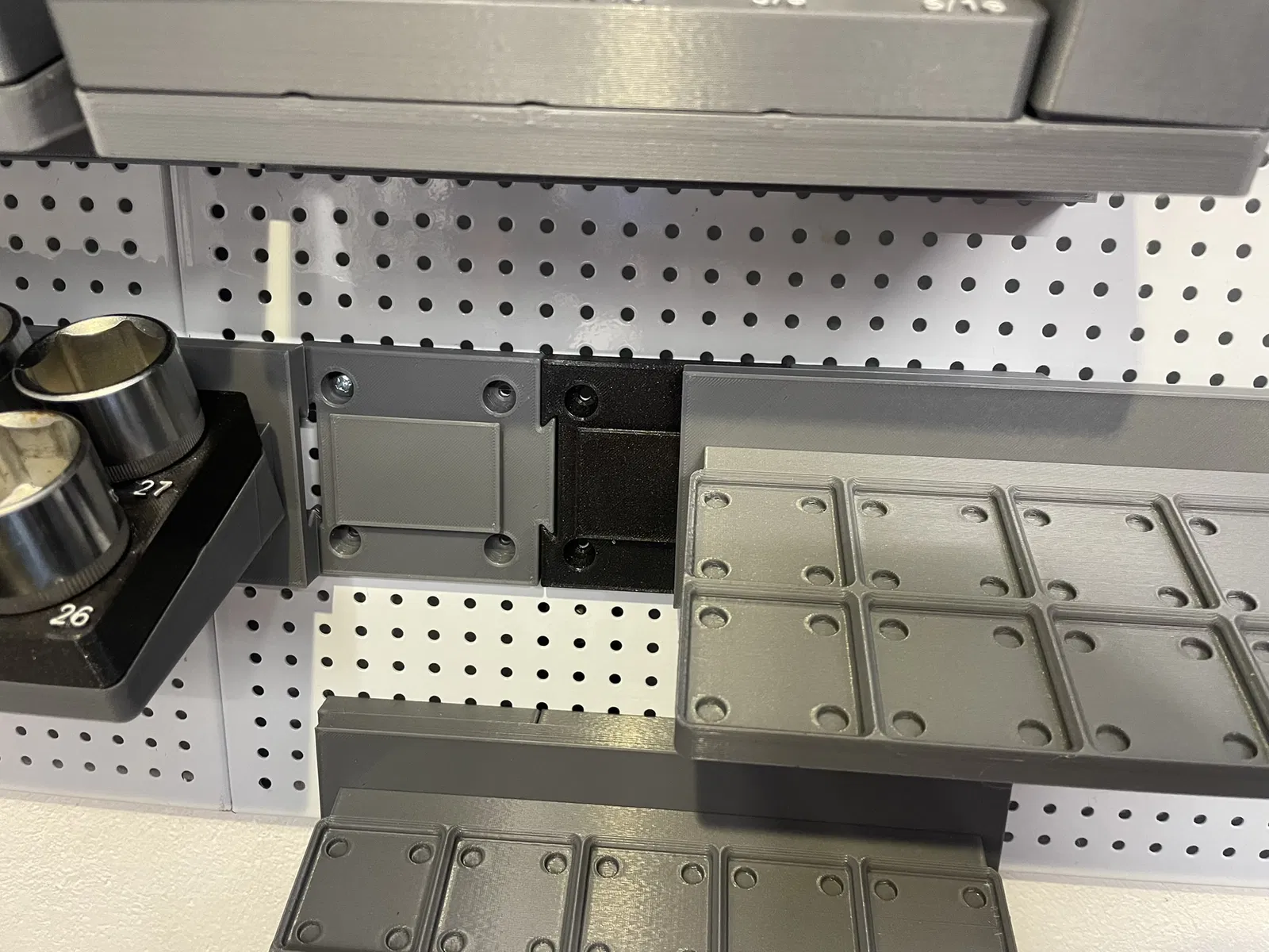 Bạn cần 3 adapaters biltema (hoặc ) để gắn lên peg board/tường.