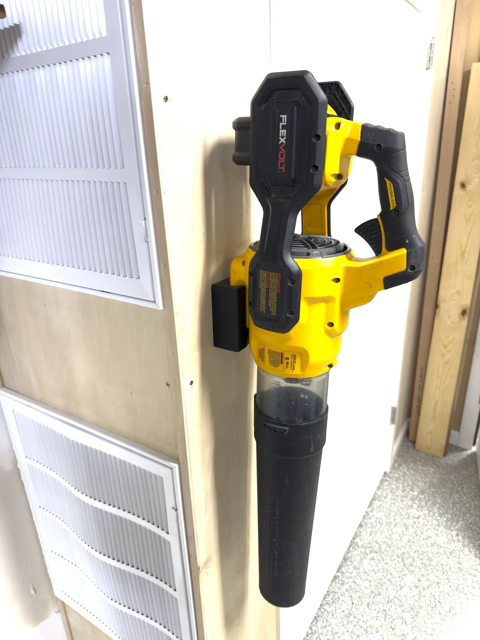 Bracket treo cho máy thổi lá Dewalt DCBL772 20V, giúp gắn lên tường hoặc cột để cất gọn. Có link tài liệu parametric OnShape gốc, miễn phí cho bạn chỉnh sửa theo nhu cầu.