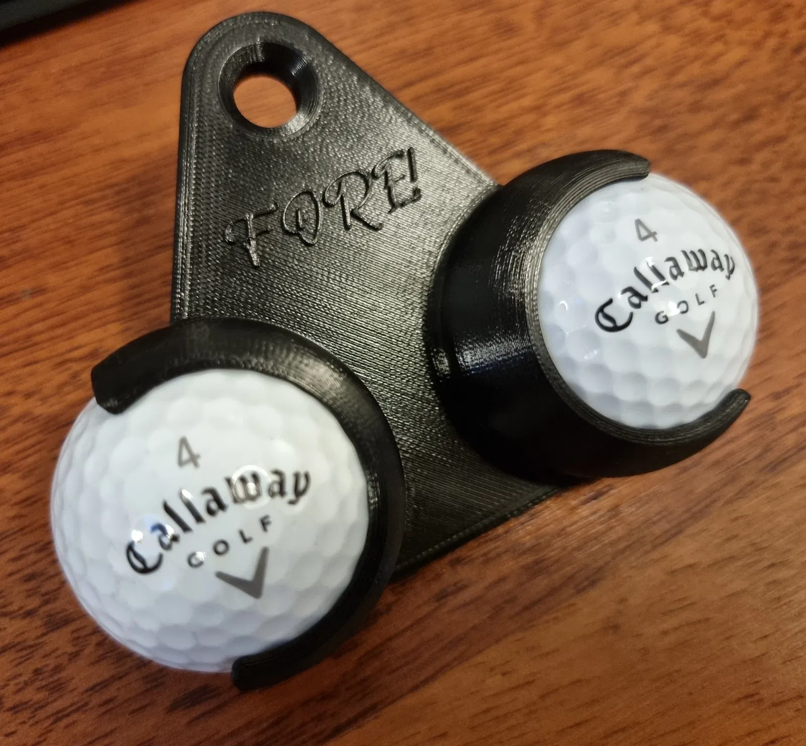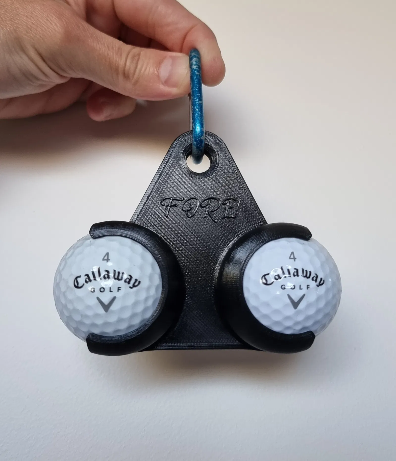 Anh em golfer ơi, tình hình là mình thấy mấy cái giá đỡ bóng golf trên thị trường cũng hay hay, nên tự làm cho mình một cái cho nó tiện đó mà. Cái này gọi là "FORE! Golf Ball Holder", đúng chuẩn dân chơi golf luôn nha.