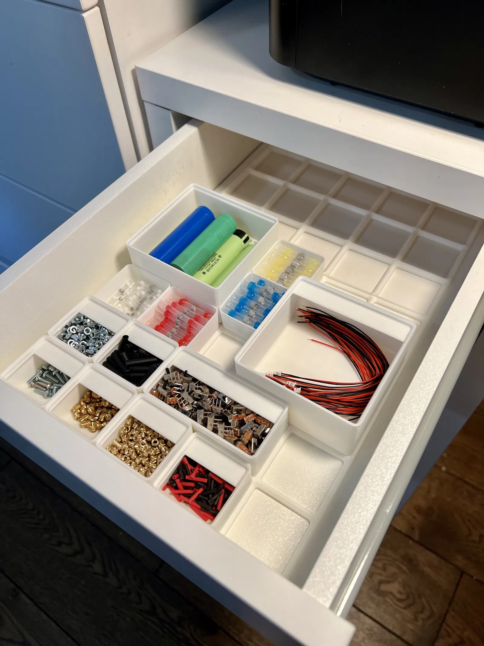 Giải pháp hoàn hảo để sắp xếp ngăn kéo bàn học IKEA MICKE của bạn với bộ tấm đế Gridfinity. Thiết kế thông minh, dễ dàng lắp đặt và tùy biến, giúp bạn tổ chức gọn gàng ốc vít, linh kiện điện tử, phụ kiện văn phòng và nhiều vật dụng nhỏ khác. Tấm đế được chia thành 2 phần, phù hợp in trên các máy in 3D khổ nhỏ như Bambu X1/P1. Tận dụng tối đa không gian lưu trữ, biến ngăn kéo bừa bộn thành khu vực làm việc ngăn nắp, hiệu quả.