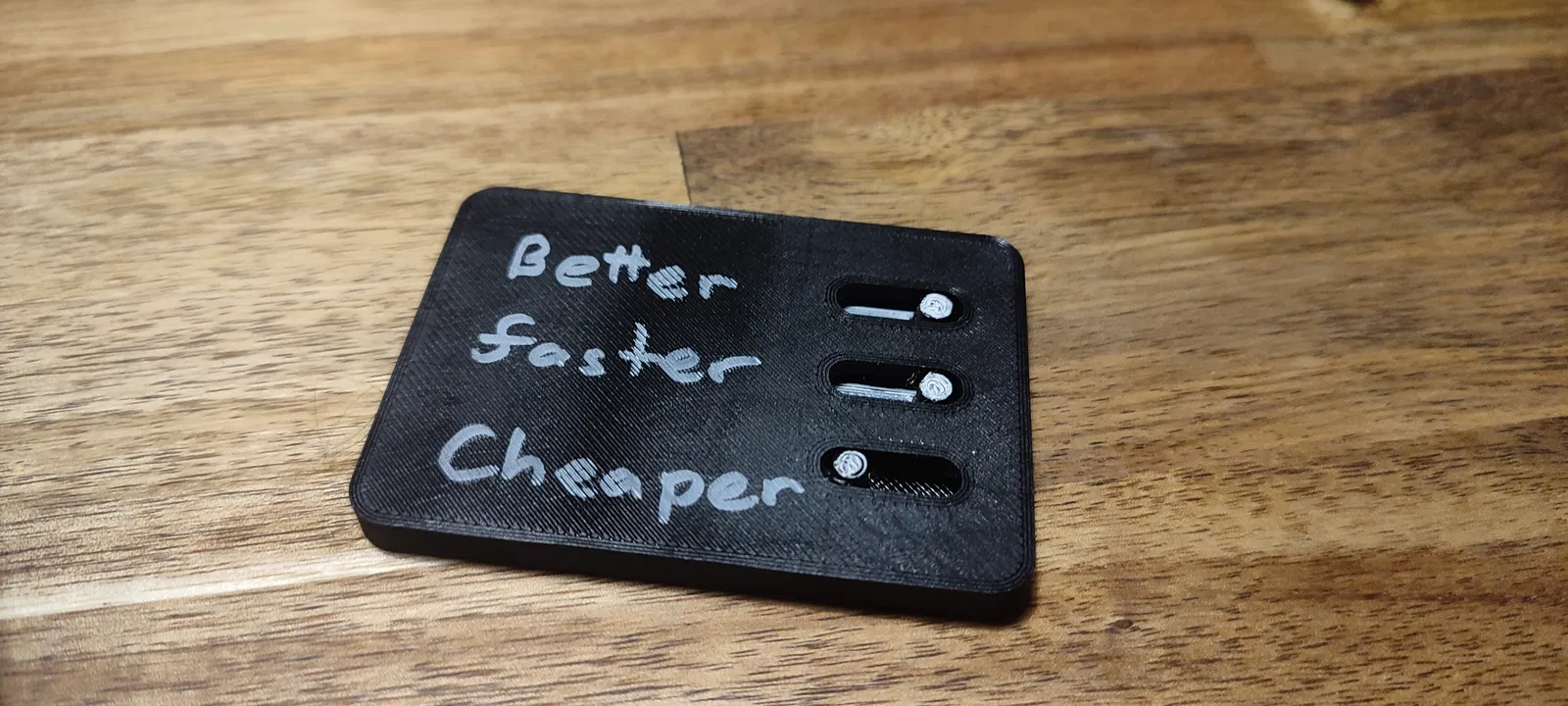 Better, Faster, Cheaper. Pick any two. Hoặc thiệt ra, bạn muốn ghi chữ gì trên mặt trước cũng được.