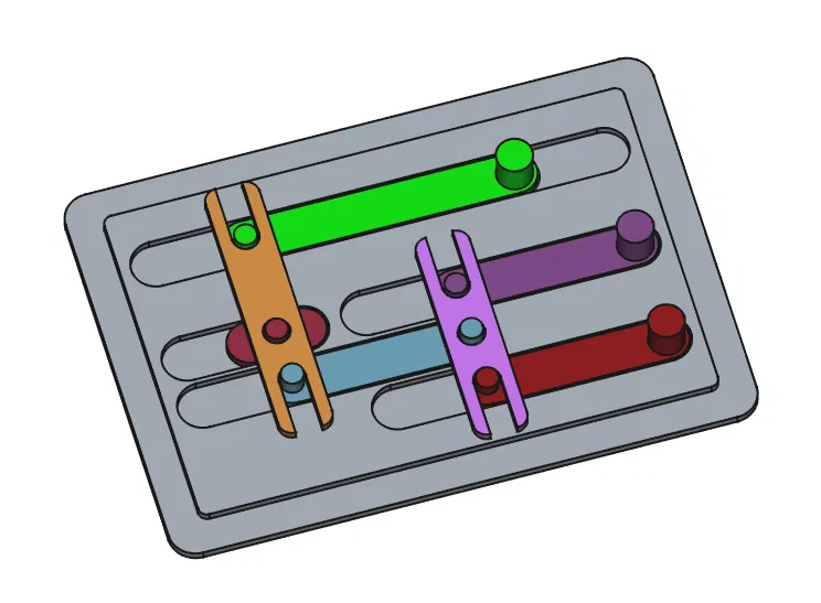 Mô hình dạng thẻ cơ khí với 3 công tắc trượt, nhưng chỉ cho phép bật tối đa 2 cái cùng lúc—luôn có 1 cái bị tắt. Có thể đổi chữ mặt trước theo ý, và nên in “Short Switch”/“Top Switch” màu tương phản.