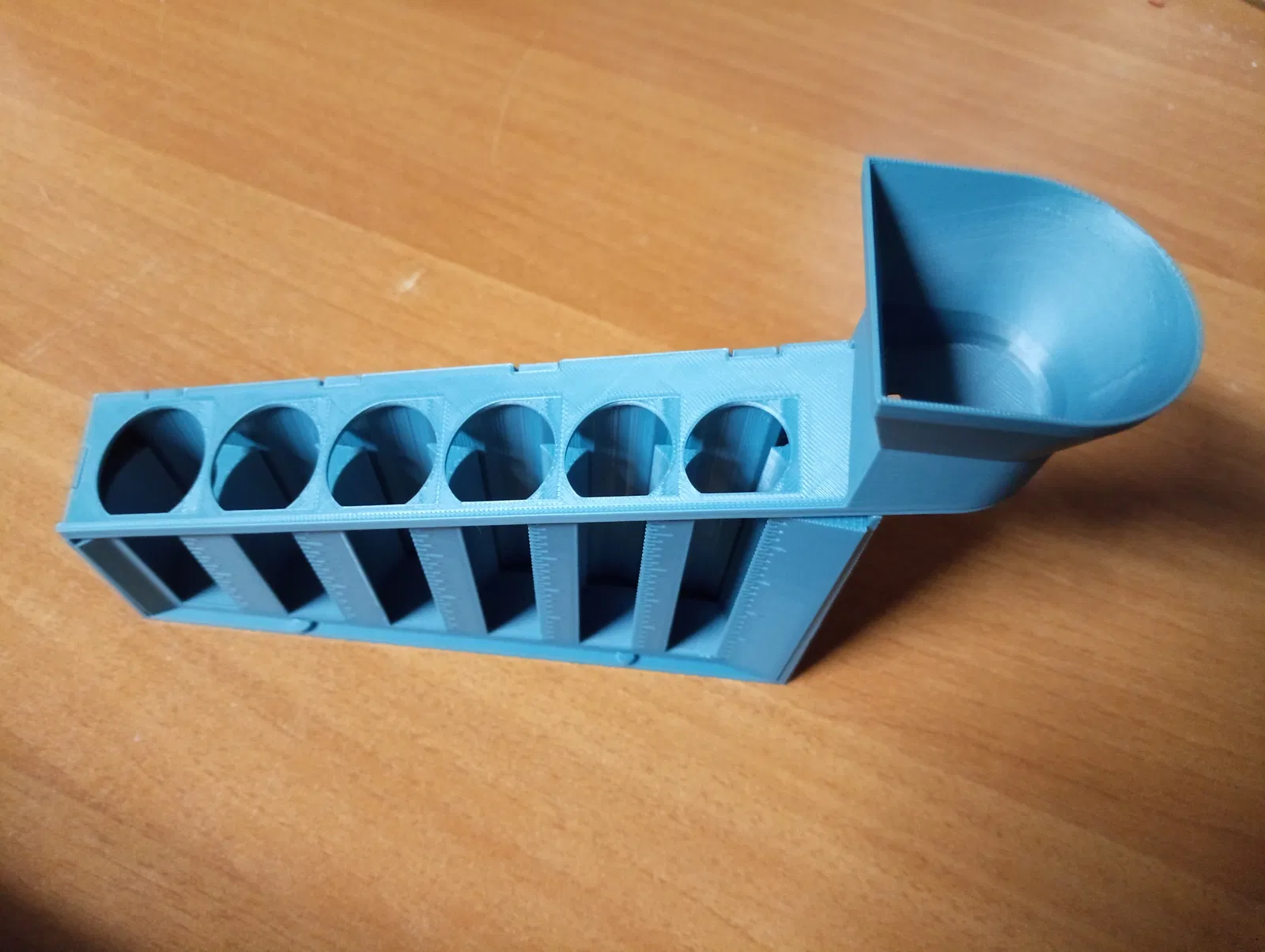 Bộ chia xu cho đồng Koruna Séc (CZK/Kč). Thả từng đồng vào phễu nạp, hệ thống sẽ tự phân loại và cho rơi vào ngăn riêng theo mệnh giá 1, 2, 5, 10, 20 và 50 CZK.