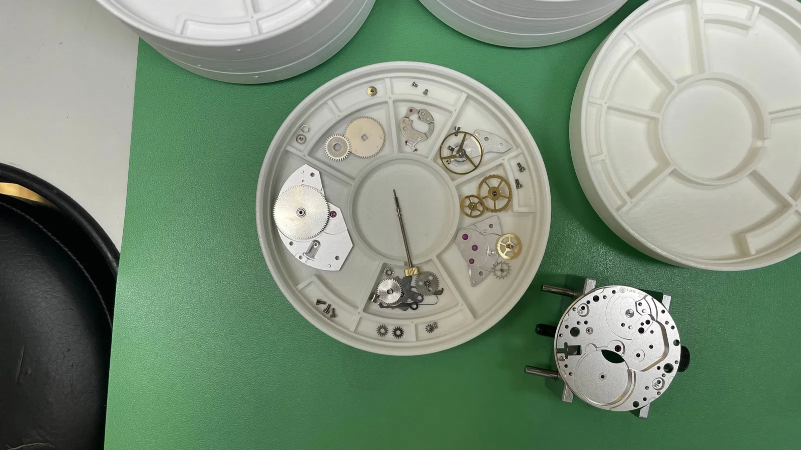 Chào bạn, mình làm phiên bản riêng của Watch Maker Trays. Chúng được thiết kế đặc biệt cho đồng hồ cơ automatic như ETA 2824-2 nhưng cũng có thể dùng chung cho nhiều loại. Mình đã chỉnh lại từng khu vực theo từng cụm lắp ráp. Ví dụ, bánh lắc (balance wheel) được tách riêng khỏi cụm escapement vì dây tóc (hairspring) rất nhạy, Các chi tiết nhỏ của cụm mainspring có khu vực riêng, và mỗi khu vực đều có chỗ để ốc/vít để sắp xếp gọn gàng hơn. Trong một khu vực có phần lõm để đặt winding shaft, giúp bộ máy automatic không bị xoay lung tung gây khó chịu. Mình khuyên nên in kèm organic supports.
