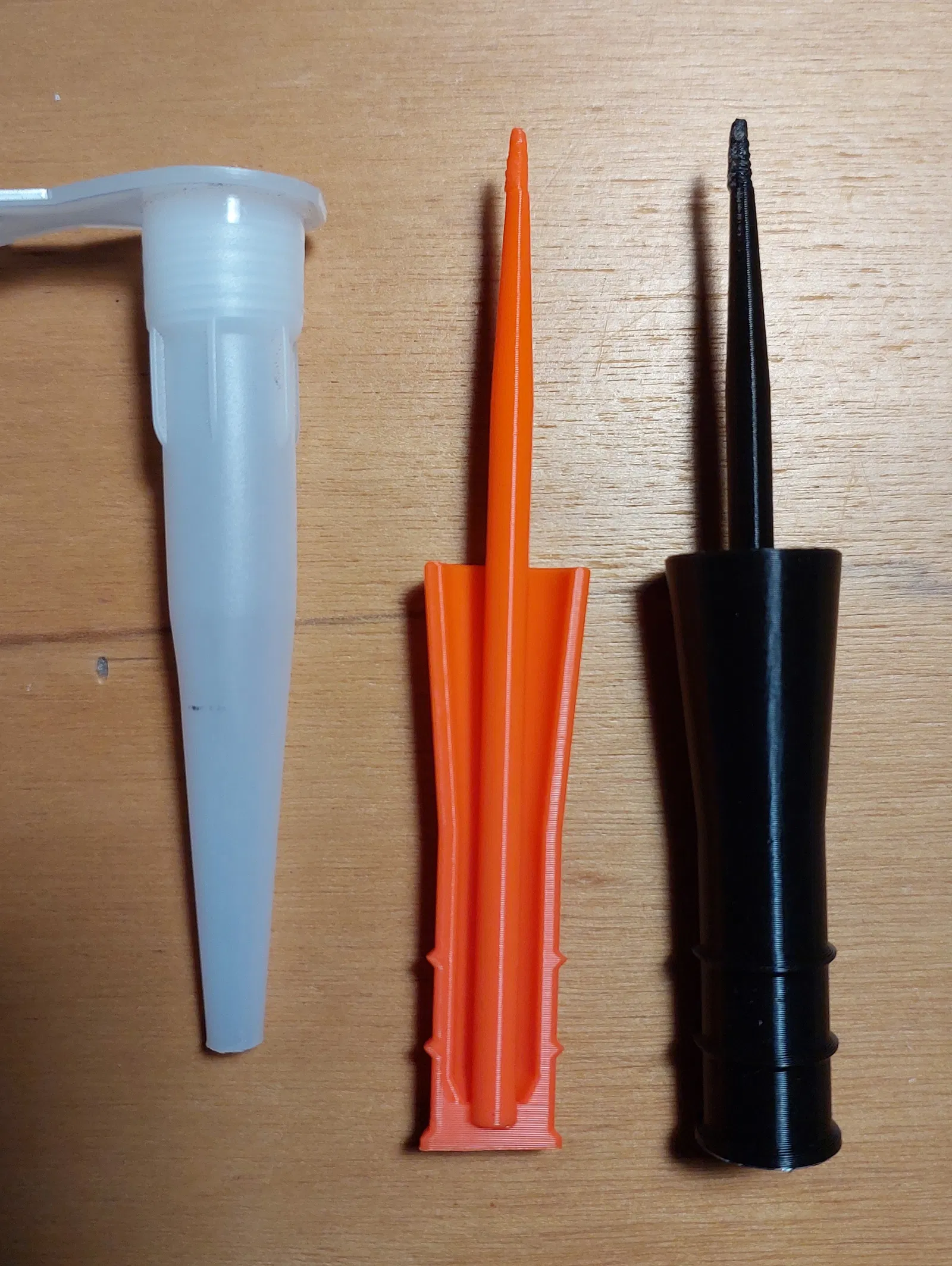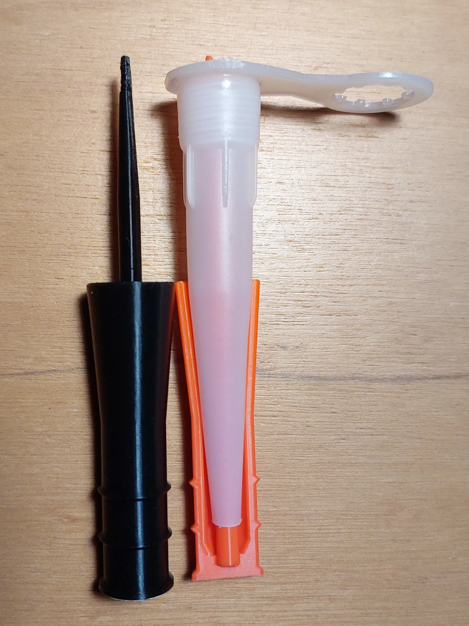 Nắp chụp cho ống keo trám, có kim dài xuyên suốt đầu vòi để tạo đường thông qua phần keo đã đông ở tip. Giúp kéo dài thời gian sử dụng ống sealant; khuyến nghị in PETG, giảm tốc độ phần kim, có tùy chọn in 45°.