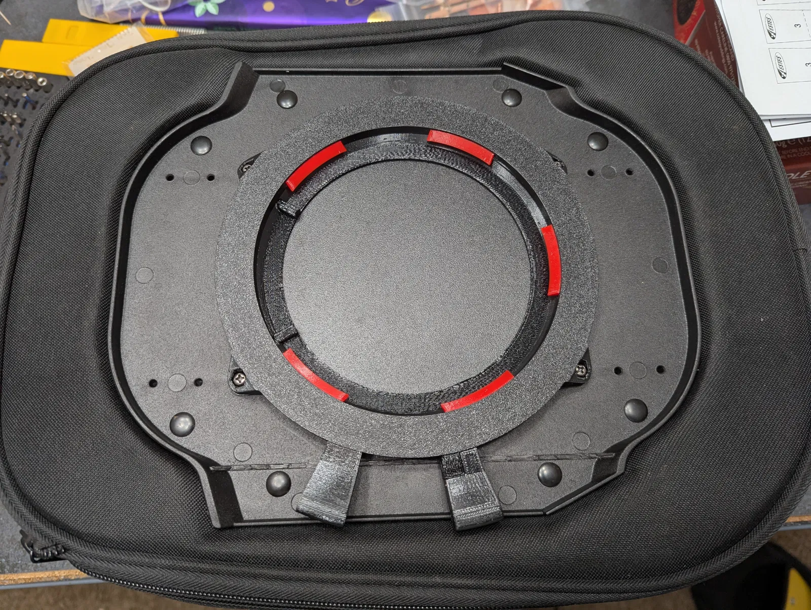 - Bạn có thể gắn vào bất kỳ tankbag nào. Givi không bán rời cơ cấu này. Mình làm thêm một tool để canh vị trí lỗ bắt (mounting holes) cho việc khoan.
