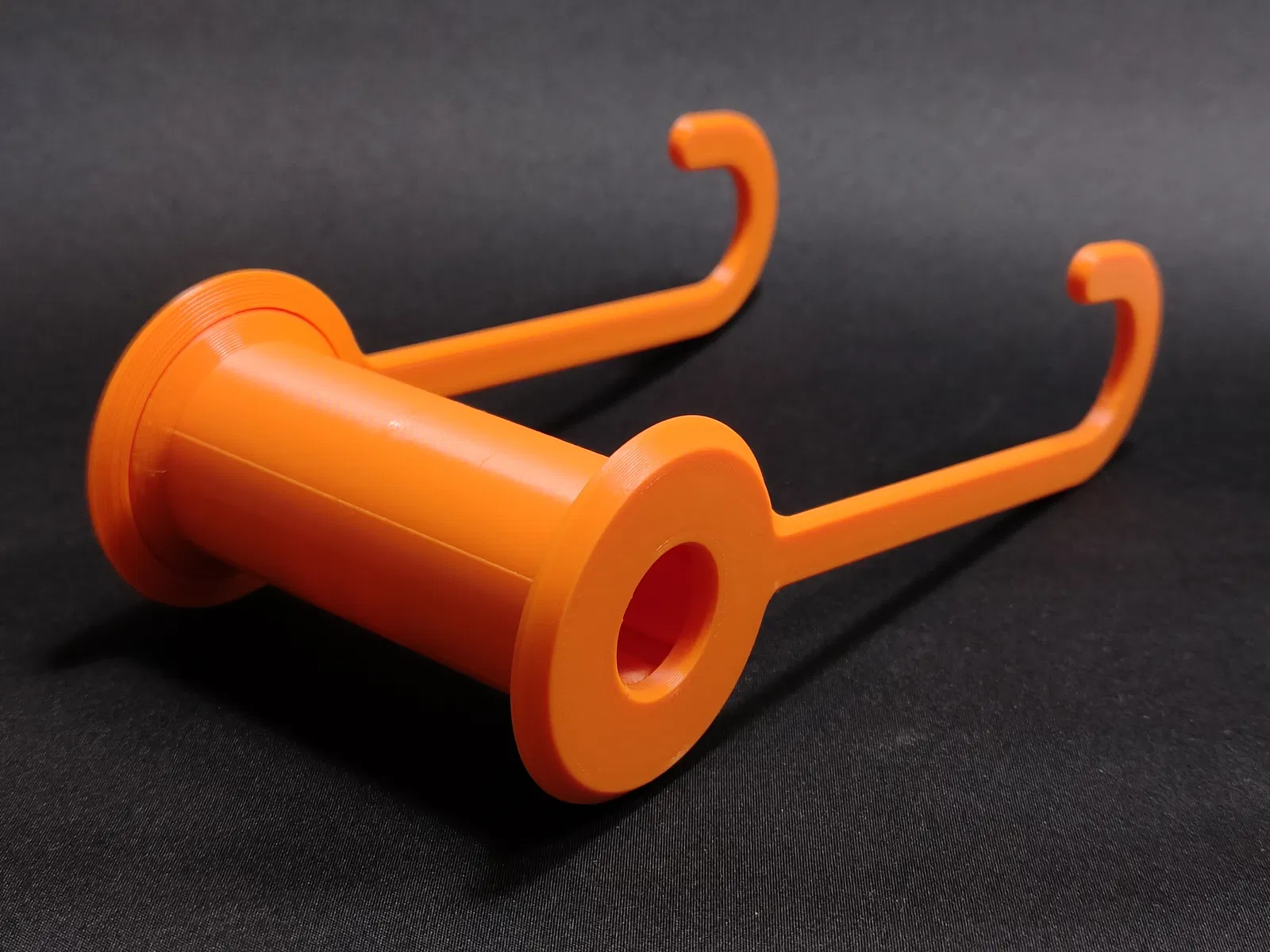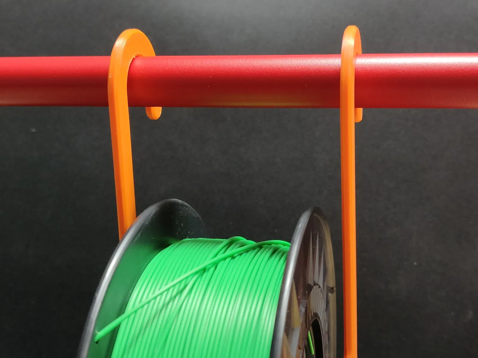 Giá treo cuộn filament (spool holder) được thiết kế để thay cuộn nhanh gọn, đỡ lằng nhằng, và treo lên thanh treo trong tủ quần áo (đường kính 2cm).