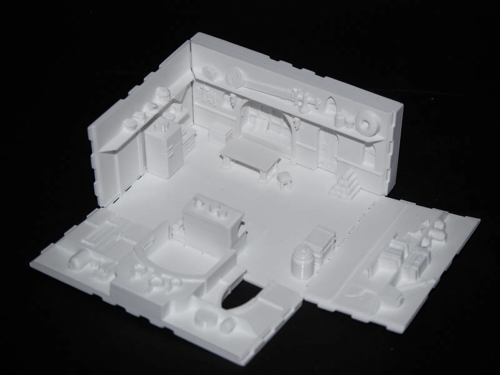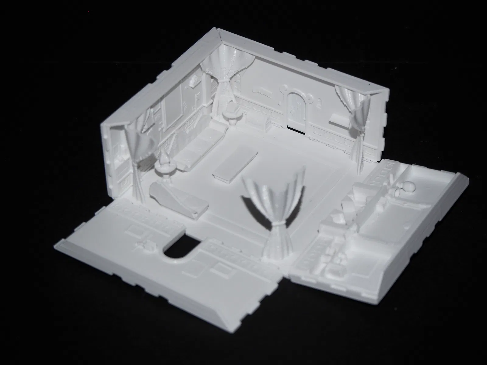 Với bản in từng phòng riêng, các bức tường sẽ được in nằm phẳng trên bàn in và có bản lề để gập dựng lên.