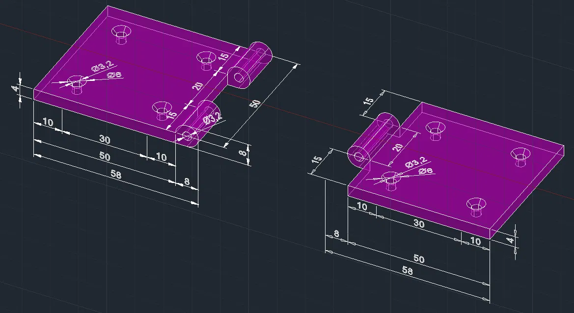 Các lỗ được thiết kế cho vít DIN 7505A. Phần bản lề có thể dùng bulong M3 x 20 (15) mm với đầu chìm.