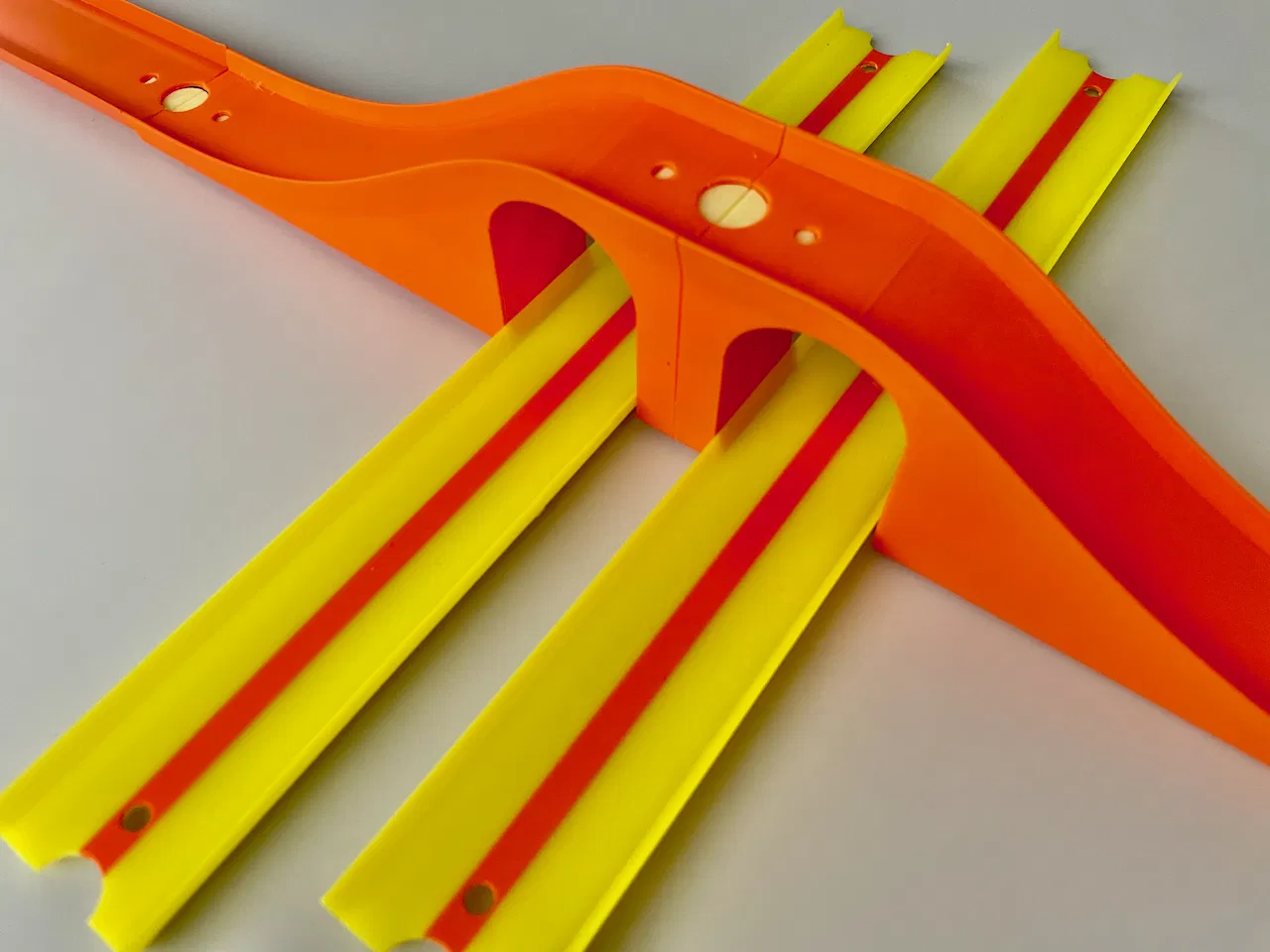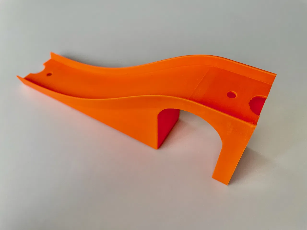 Mẫu cầu HotWheels thiết kế để vừa với máy in nhỏ khổ 180x180mm. In theo hướng như hình, chỉ cần supports cho phần rộng; chỗ mỏng trên vòm vẫn đủ bền. Có kèm file STEP để chỉnh sửa dễ dàng.