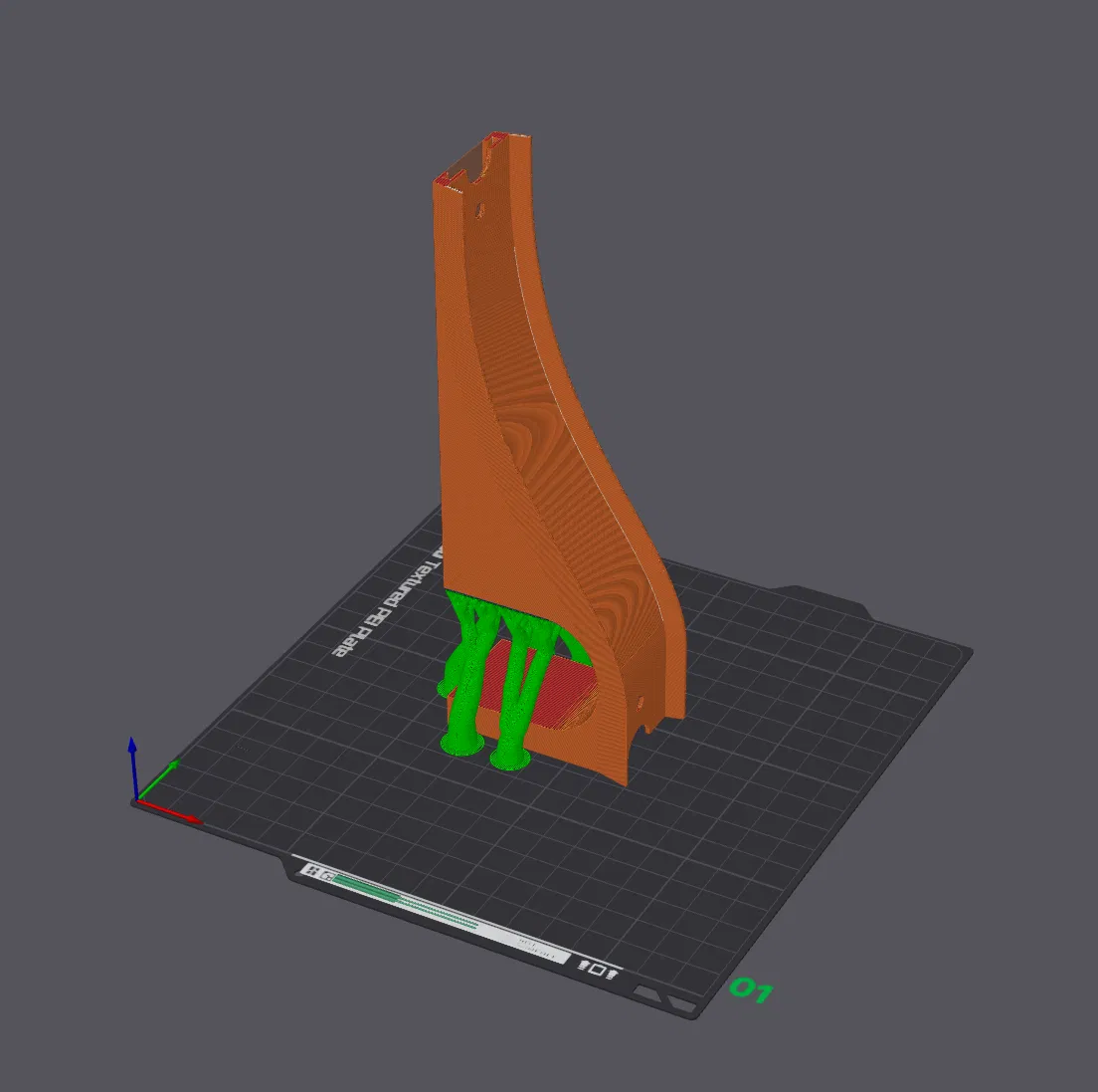Mình có tìm được vài mẫu tương tự, nhưng không vừa với bàn in của máy mình (180x180), nên mình làm lại model mới :) Mình in theo đúng hướng như trong ảnh chụp màn hình, chỉ bật supports cho phần rộng. Lúc đầu mình cũng hơi lo chỗ mỏng phía trên vòm sẽ bị gãy, nhưng in ra thì thấy đủ chắc.