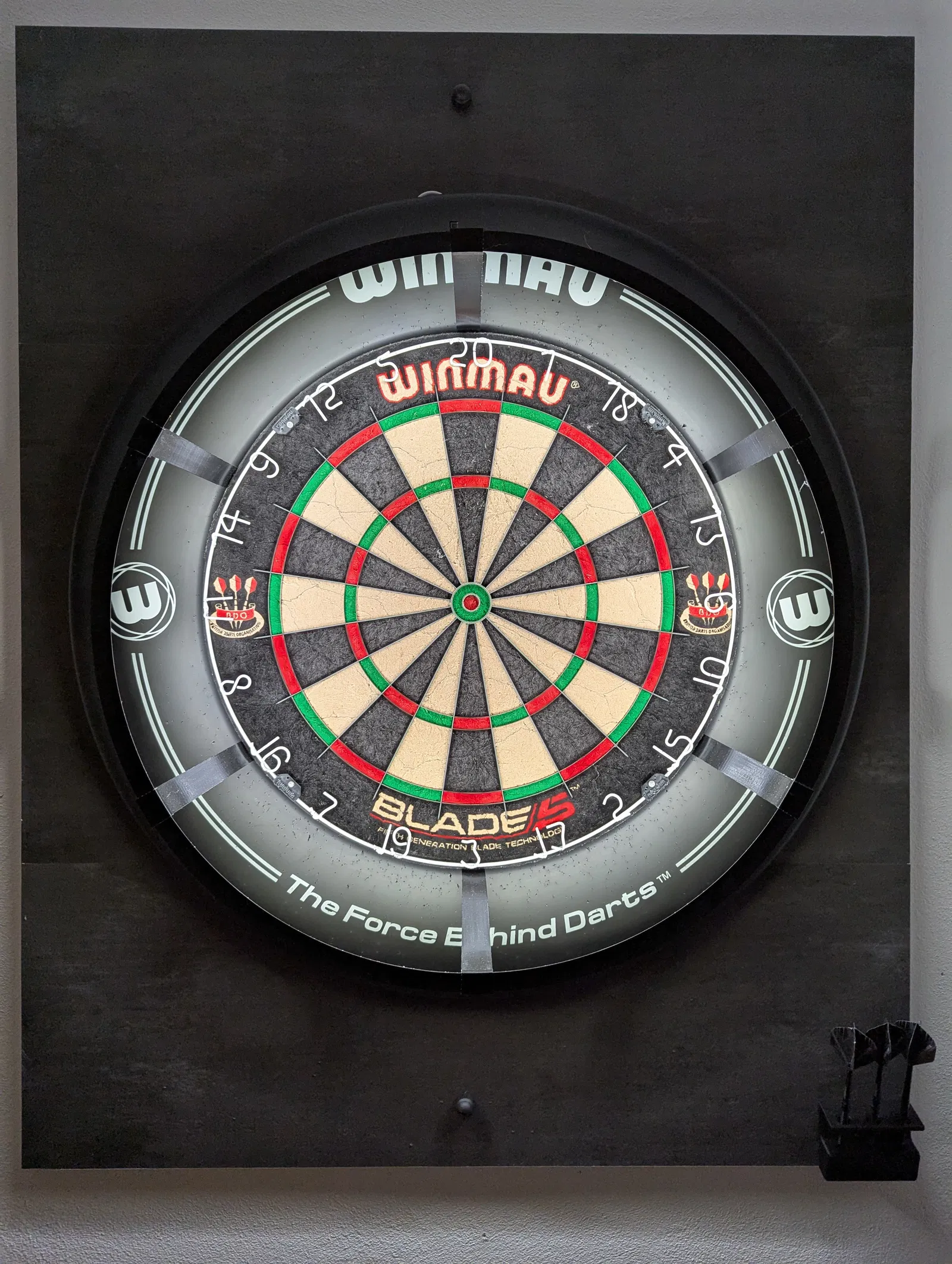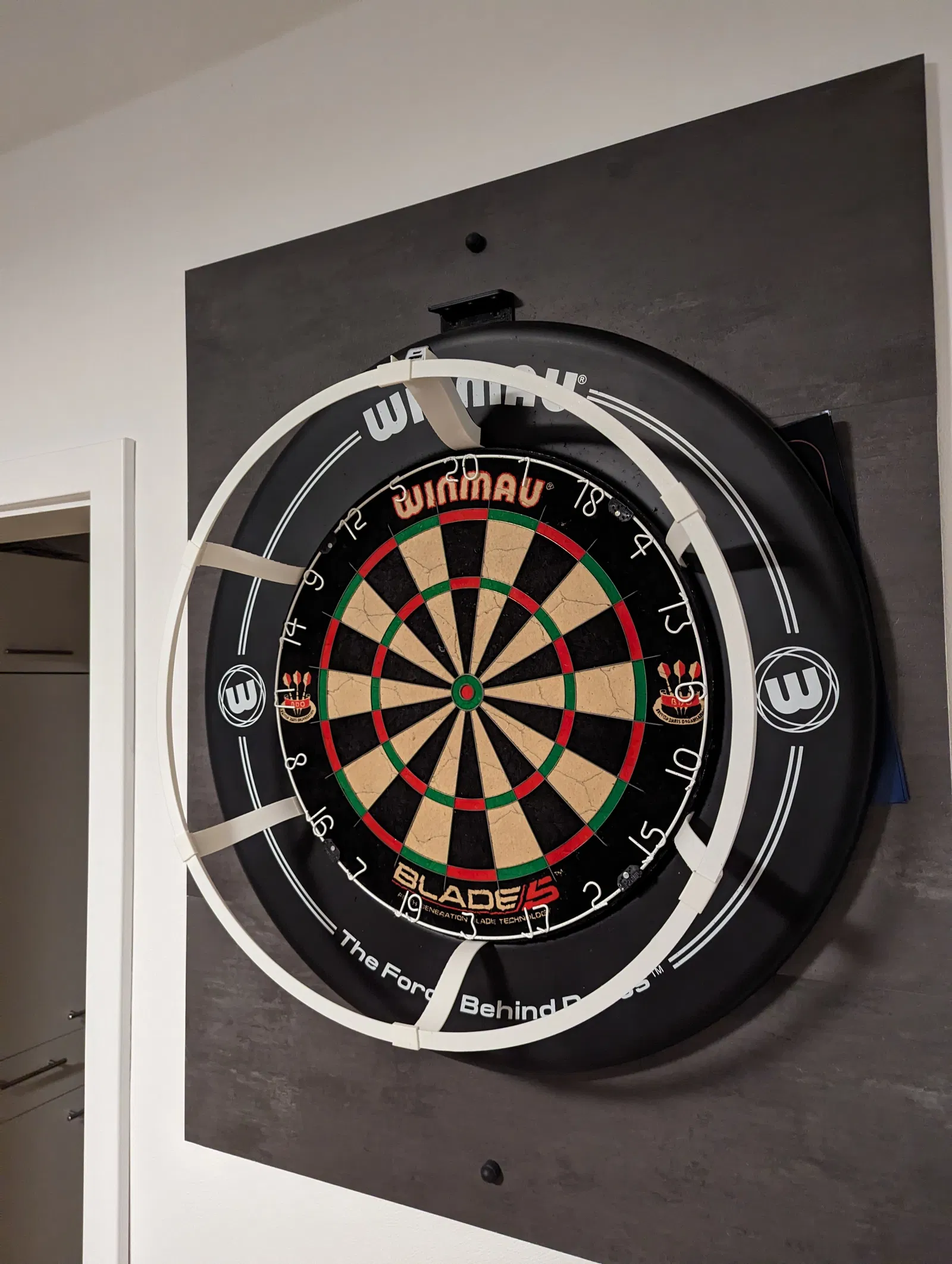 Các chân đỡ của vòng được thiết kế để chỉ cần kẹp/chèn vào giữa dartboard và phần surround.