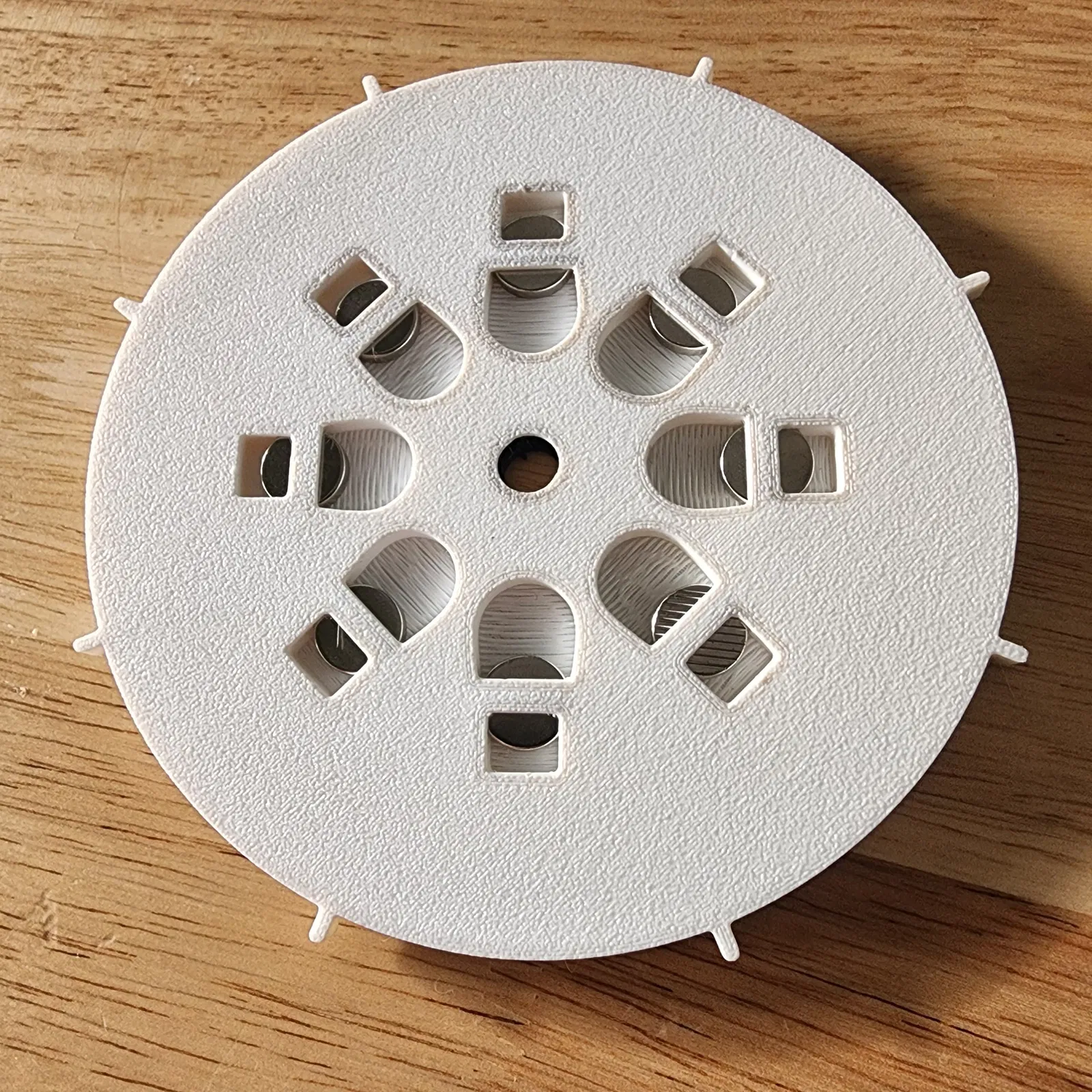 Cần 18 hoặc 20 viên nam châm kích thước 3mm x 12mm cho spinner (xem Hướng dẫn lắp ráp). Có một model chỉ gồm phần insert nam châm, nên bạn không cần in cả spinner chỉ để kiểm tra nam châm có vừa không.