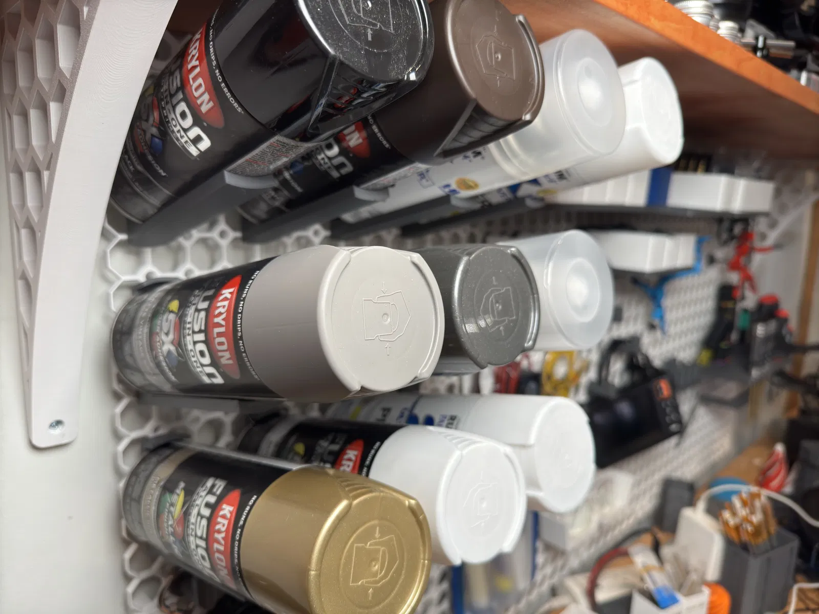 - Lưu ý khi in: Anh em có thể tùy chỉnh kích thước và số lượng các khe giữ cho phù hợp với các loại chai sơn xịt khác nhau. Độ dày lớp in (layer height) khoảng 0.2mm sẽ cho kết quả tốt.