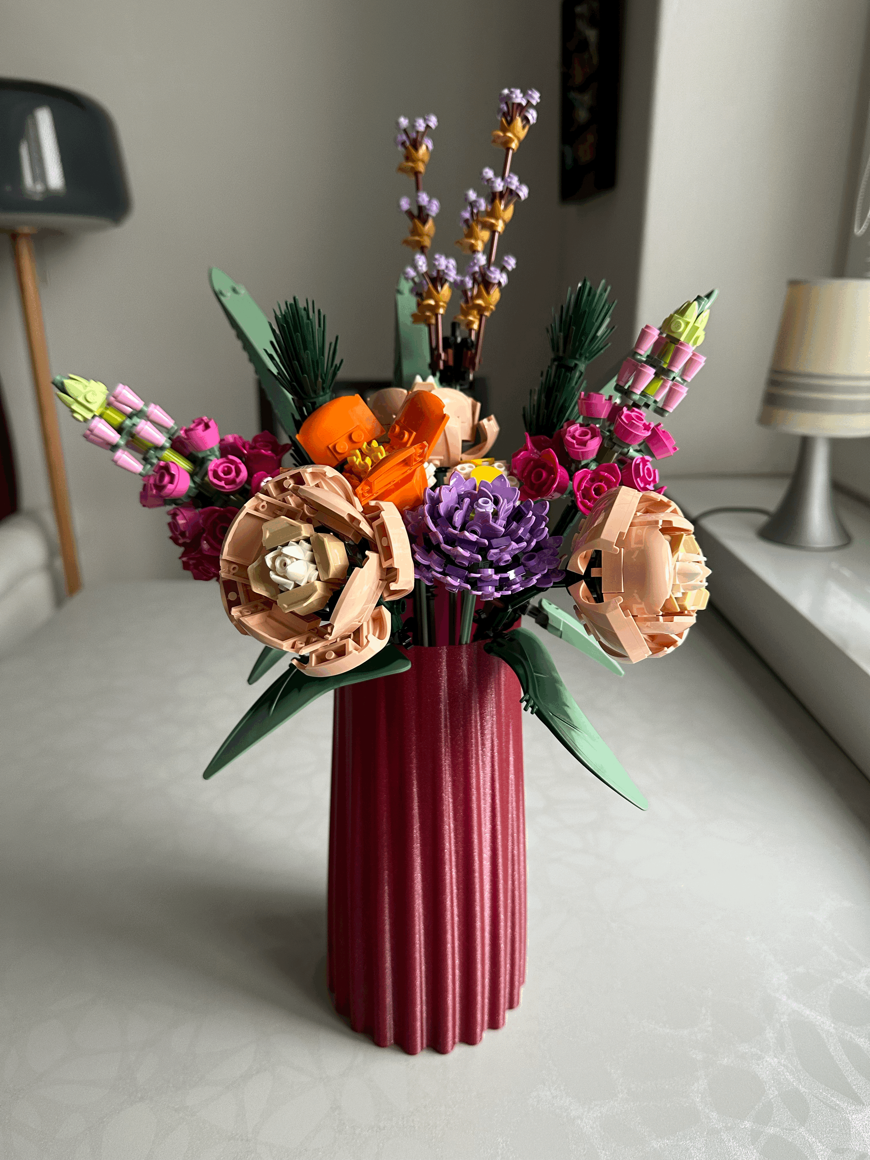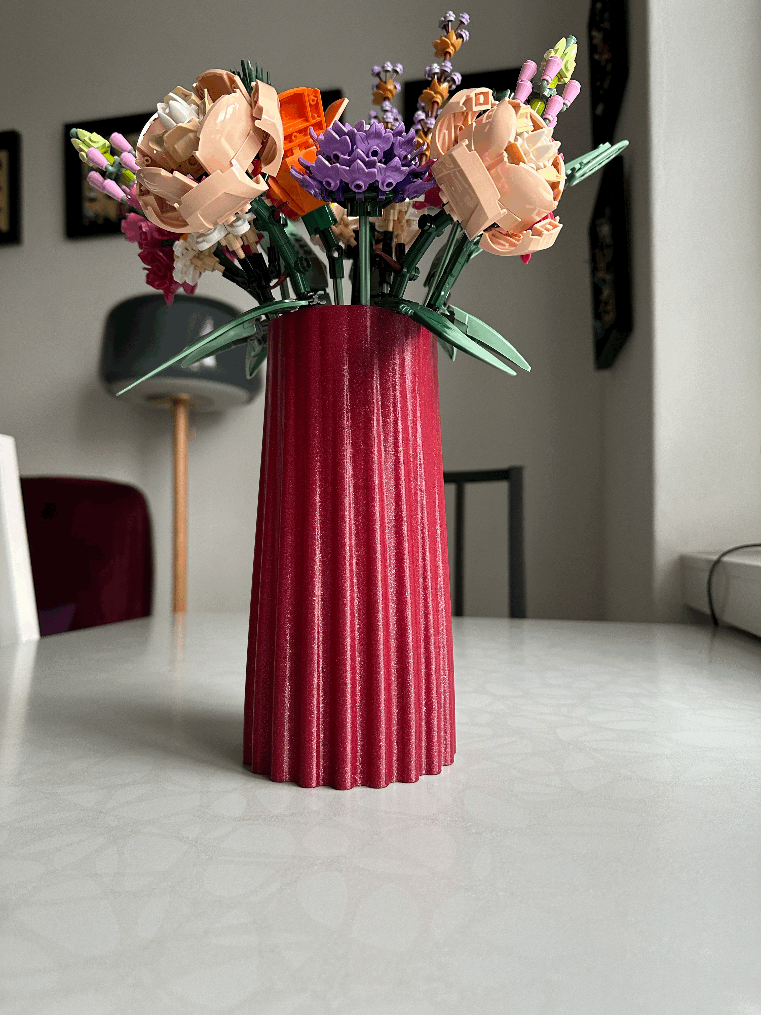 Chiếc bình này mang đến một phong cách rất riêng, vừa hiện đại vừa có chút gì đó hoài cổ, gợi nhớ đến những bộ xếp hình tuổi thơ. Bạn có thể in chiếc bình này với nhiều màu sắc khác nhau để phù hợp với nội thất hoặc sở thích cá nhân. Hãy tưởng tượng một bó hoa Lego rực rỡ được cắm trong chiếc bình đỏ tươi, hay một phong cách tối giản với bình màu trắng và hoa khô. Khả năng sáng tạo là vô hạn, và chiếc bình này sẽ là người bạn đồng hành lý tưởng cho mọi ý tưởng trang trí của bạn.