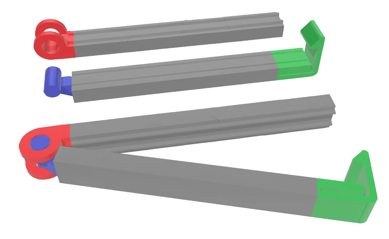 Với những ai muốn tự tạo kích thước riêng, mình có kèm một file *.3mf. Trong file này các phần tử đã được tách rời. Bạn có thể dùng, ví dụ như Windows 3D Builder, để thay đổi chiều dài của kẹp. Lưu ý: chỉ kéo dài các phần màu xám! Phần đầu và phần đuôi (màu) cần được di chuyển tương ứng. Sau đó, hai nửa của kẹp phải được xoay và đặt vị trí phù hợp để in. (xem hình cuối và file 3mf)