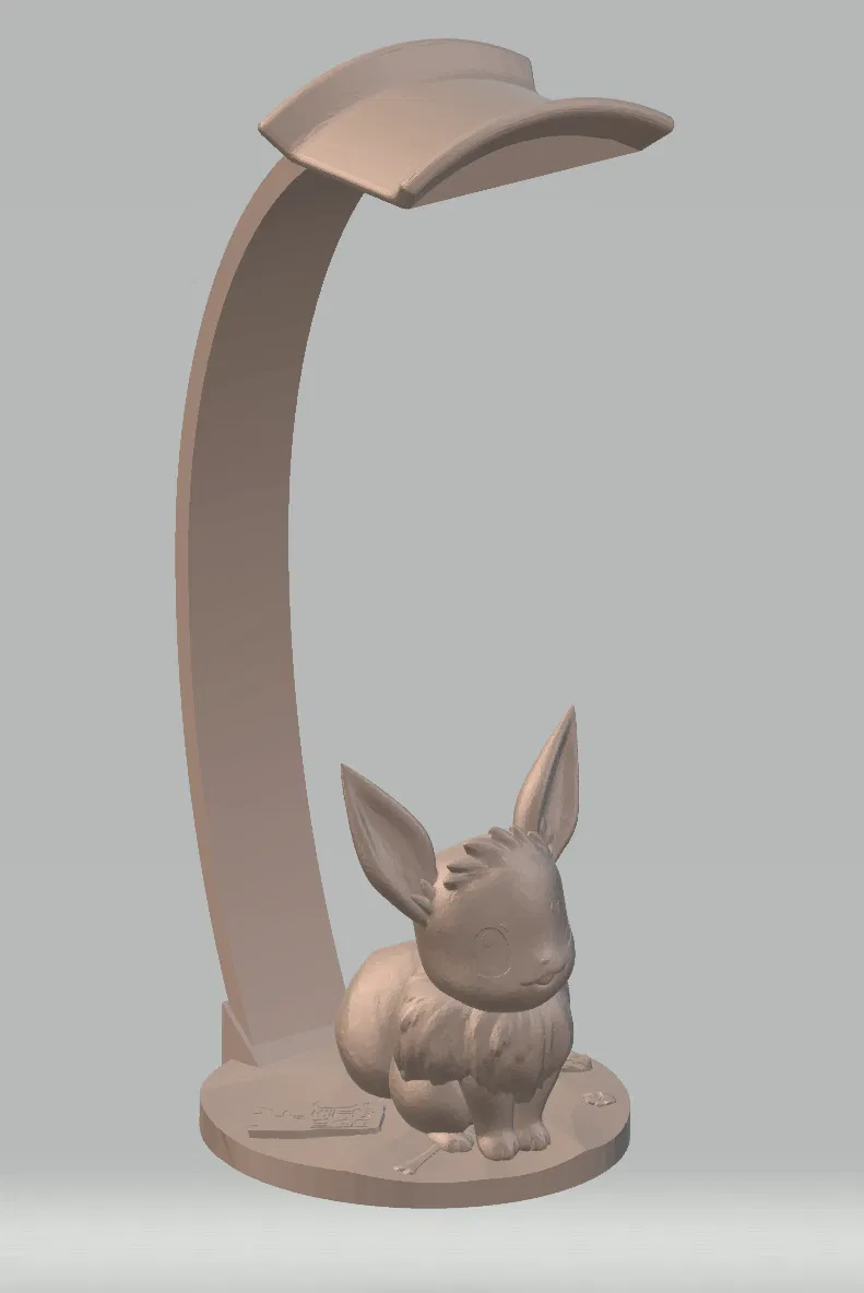Giá đỡ tai nghe/headset Eevee gồm 2 phần: thân chính kèm tượng và phần holder trượt vào. Phần tựa tai nghe được thiết kế lỏng để chỉnh góc theo ý, nên khuyến nghị dán keo. In PLA, cần supports.