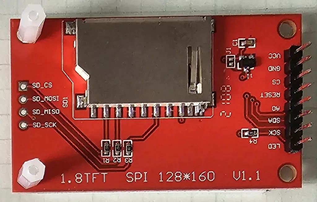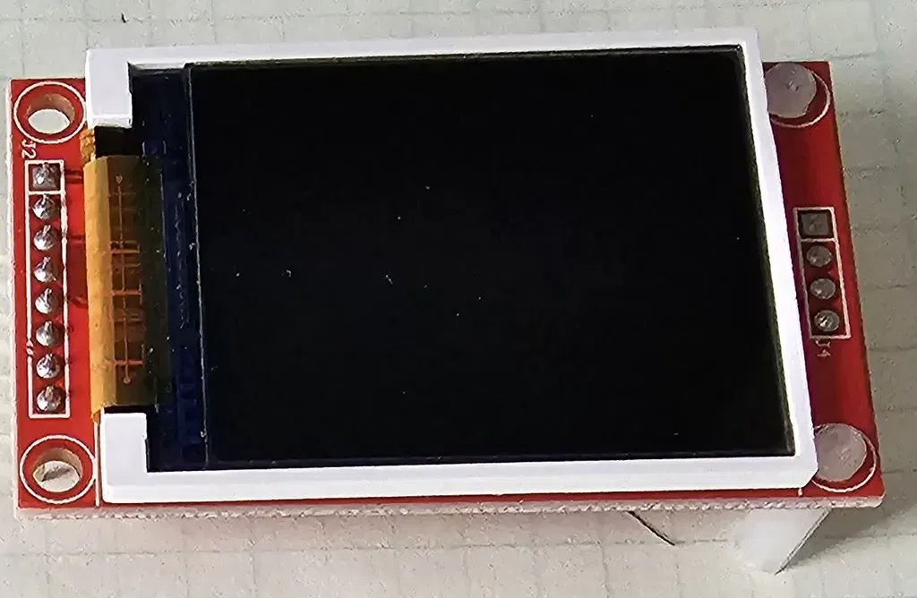 Đây là một hộp mà tôi đã làm để chứa các màn hình ST7735 của mình. Nó được ghép lại với nhau mà không cần keo và tôi đã sử dụng dây nhảy breadboard để lộ các chân vì chúng quá ngắn trên phần đó.