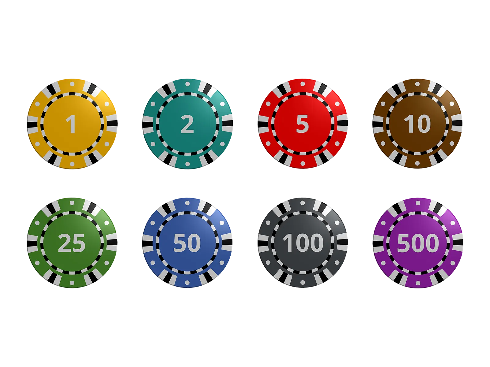 • Đa dạng giá trị: Chip được thiết kế với nhiều mệnh giá khác nhau (1, 2, 5, 10, 25, 50, 100, 500), phù hợp cho mọi loại hình trò chơi từ giải trí đến thi đấu.