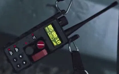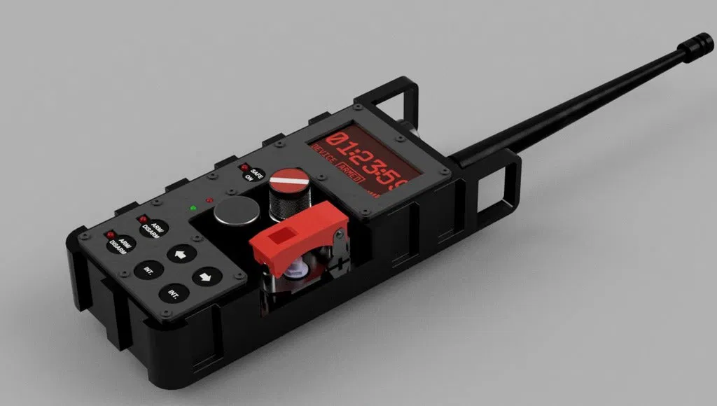 - Thiết kế độc đáo: Mô hình mô phỏng chân thực thiết bị kích nổ từ xa với các nút điều khiển, màn hình LED hiển thị trạng thái "DEVICE ARMED" và "01:23:59", cùng với cần gạt đỏ và nút xoay đặc trưng.