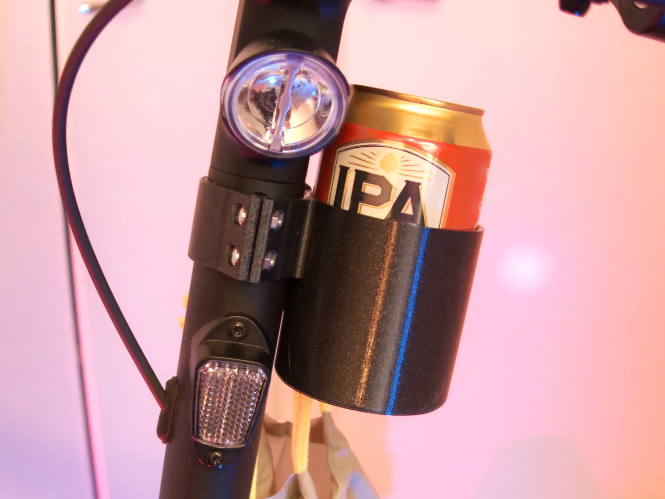 Ngoài việc giữ chắc lon nước, mẫu thiết kế này còn tích hợp thêm một chiếc móc nhỏ phía dưới, cực kỳ tiện lợi để treo túi xách, túi đi chợ hay thậm chí là nón bảo hiểm loại nhỏ. Đừng lo về việc đồ uống bị rung lắc hay rơi rớt nha, phần giá đỡ được thiết kế ôm sát lon nước, đảm bảo an toàn tuyệt đối.