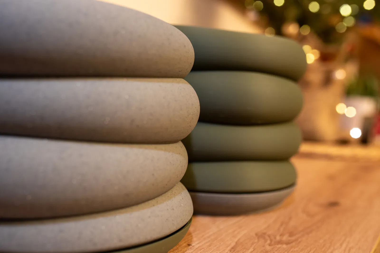 Đường kính trong của mẫu full size (màu xanh olive trong ảnh) là 120mm; kết hợp với chiều cao 118mm thì thể tích khoảng 1.3L. Thu nhỏ xuống 90% (màu xám trong ảnh) thì thể tích còn khoảng 0.9L.