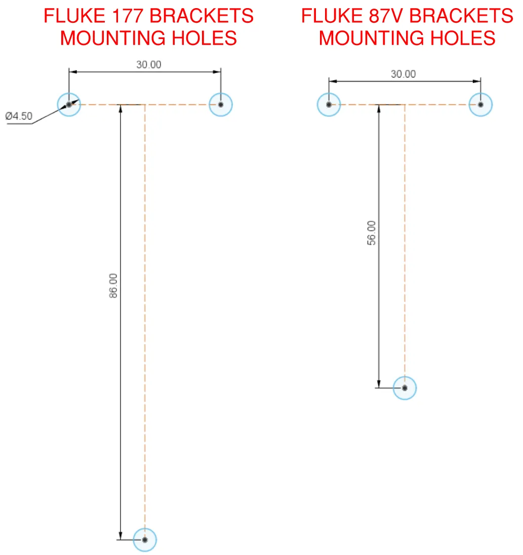 Cần một bộ giá treo tường cho Fluke 87V và Fluke 177 của tôi. Đã trải qua một vài phiên bản để chúng trượt vào hoàn hảo, giữ an toàn mà không di chuyển, nhưng cũng dễ dàng tháo ra khi bạn muốn gỡ đồng hồ. Lỗ gắn được kích thước cho vít M4. Cũng bao gồm một giá gắn bên cạnh mà tôi đã sử dụng để giữ chúng giữa các thanh, nhưng hoàn toàn tùy chọn. Tôi đã bao gồm một bức ảnh về kích thước lỗ gắn để bạn có thể bố trí các giá trên một thứ gì đó khác, hoặc bắt chúng trực tiếp vào tường hoặc giá đỡ, v.v.