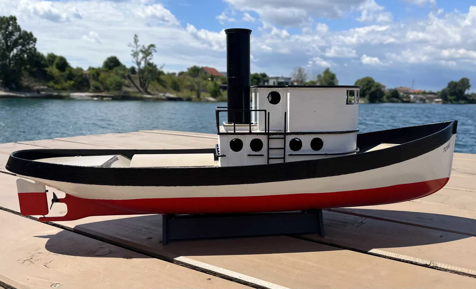 Mẫu thuyền câu cá điều khiển từ xa dùng ngoài trời (chạy hồ). Kích thước ~68×20,5×28 cm, thiết kế in được trên MK3. Khuyến nghị PETG. Hỗ trợ 2 lựa chọn motor DC 130 hoặc 540, kèm hướng dẫn lắp servo bánh lái và chân đế.