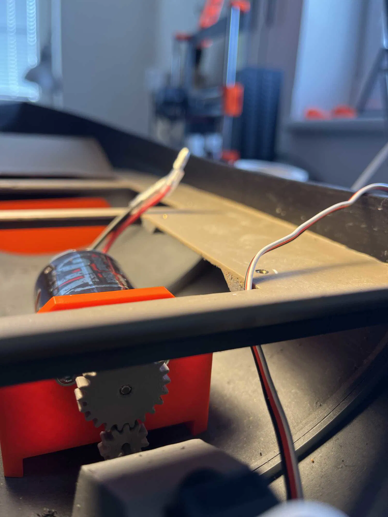 Cần in thêm các chi tiết để gắn motor và bánh răng. Bánh răng được in bằng vật liệu PC để bền hơn.