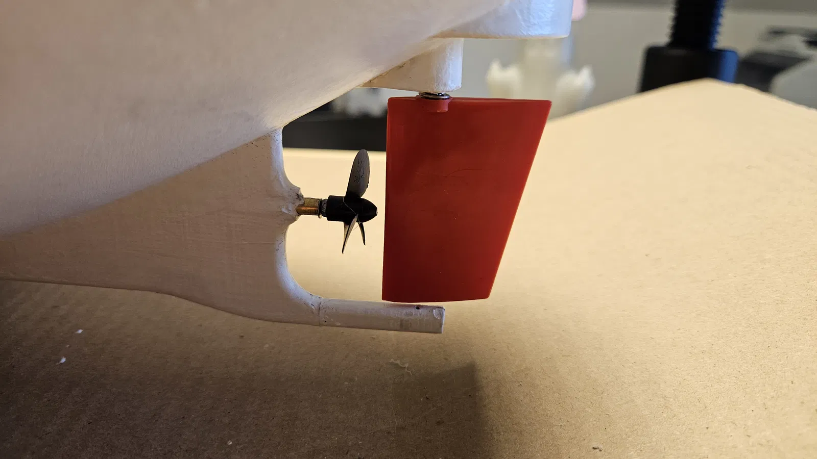 Mình in hết mọi thứ từ bài gốc và thử ráp thuyền. Nhìn chung chạy ổn, chỉ có vài phần như bánh lái (Rudder) và motor làm mình hơi nhức đầu.