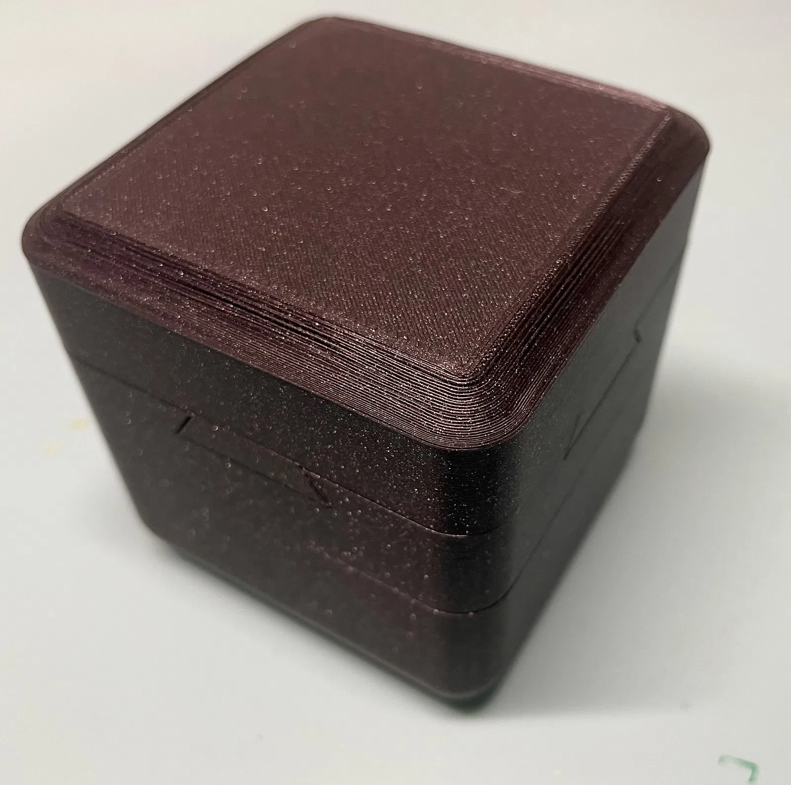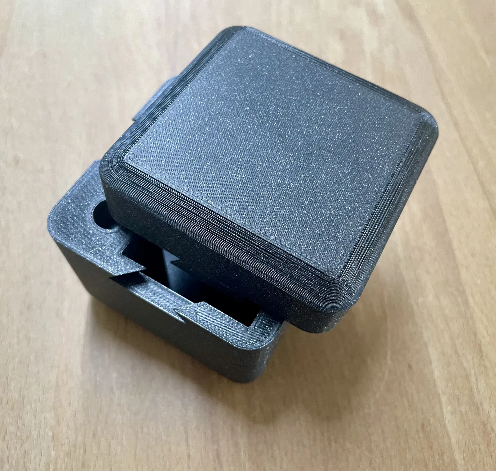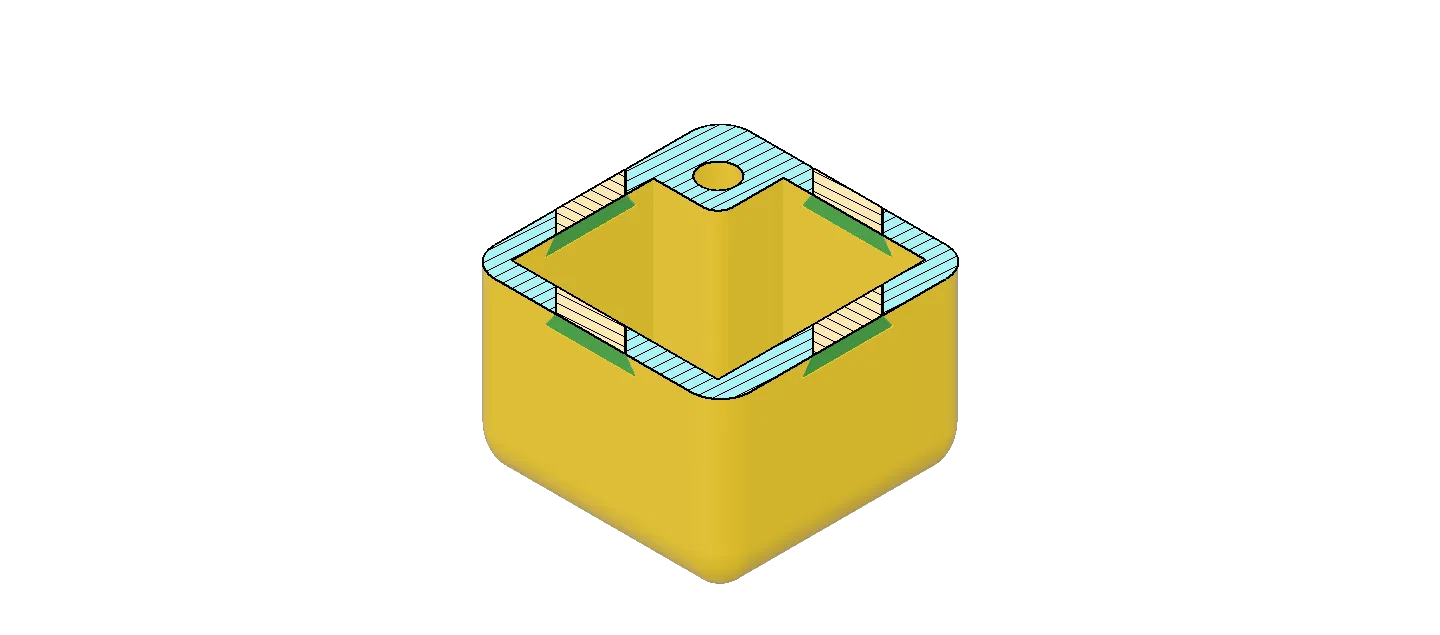 Cập nhật 2024-12-31 Tôi chỉnh phần nắp trên một chút. Tôi nhận ra lực của nam châm neodymium có thể mạnh tới mức phải gõ hộp xuống bàn quá nhiều. Giờ thì viên bi thép sẽ không nhất thiết chạm vào nam châm, tùy theo bạn ấn nam châm vào sâu cỡ nào. Nam châm nên lắp khít, nhưng đừng quên dán cố định bằng một giọt superglue.